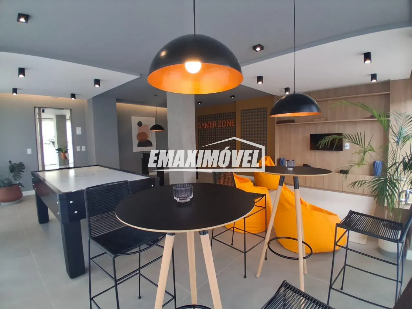 Salão de jogos e quadra esportiva