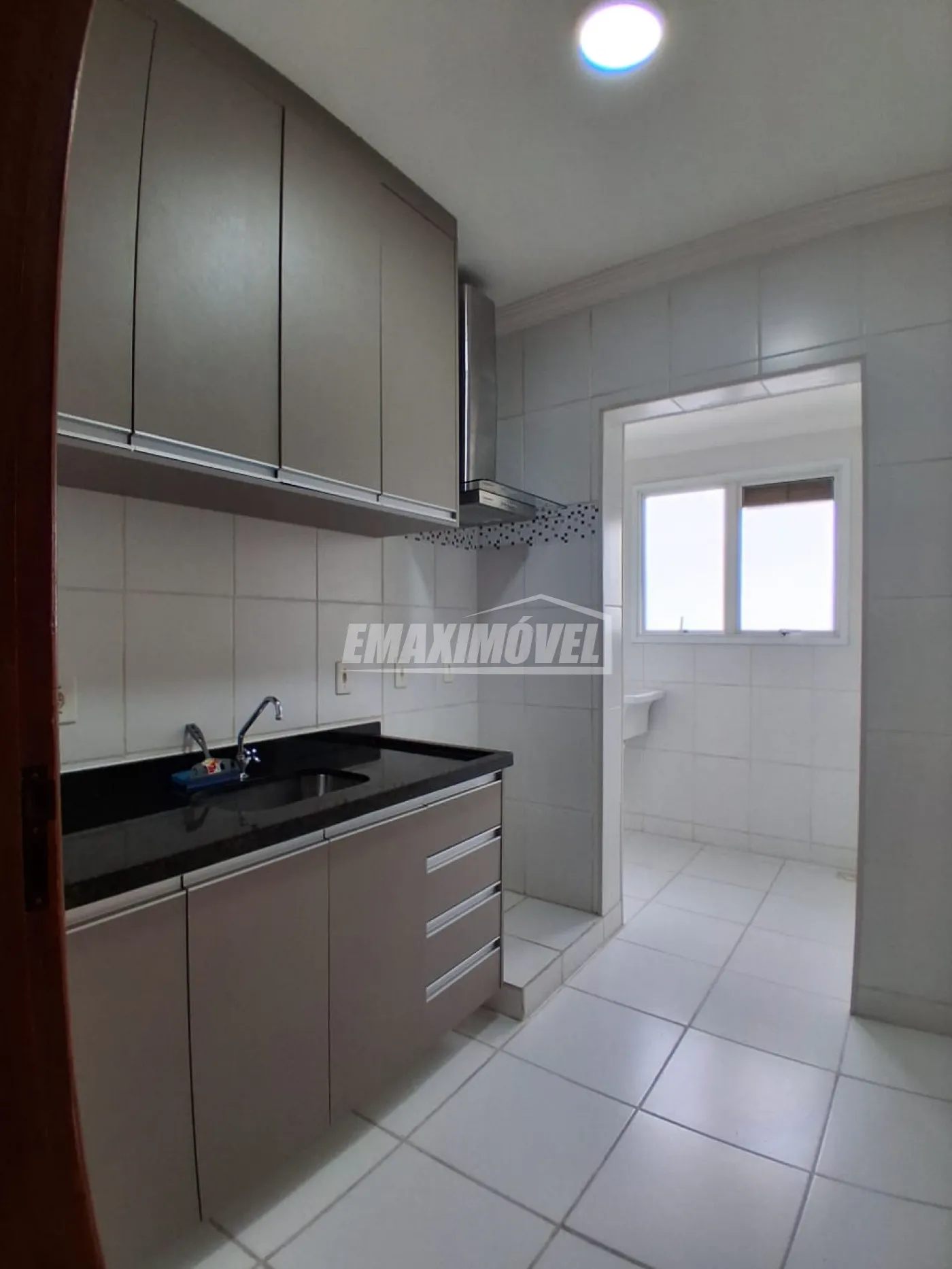 Cozinha planejada com armários e área de serviço integrada