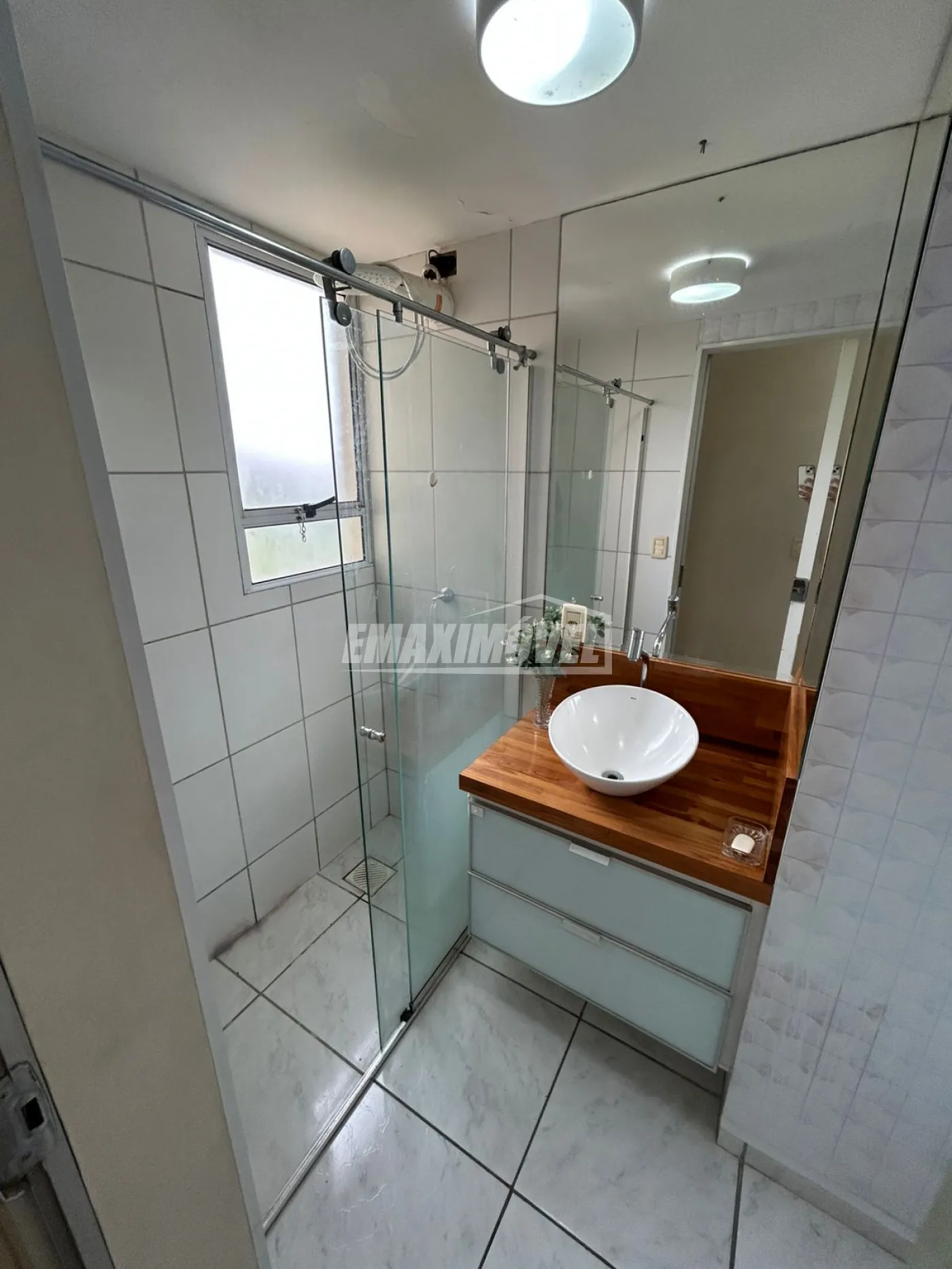 1 Banheiro Social com box de vidro e gabinete