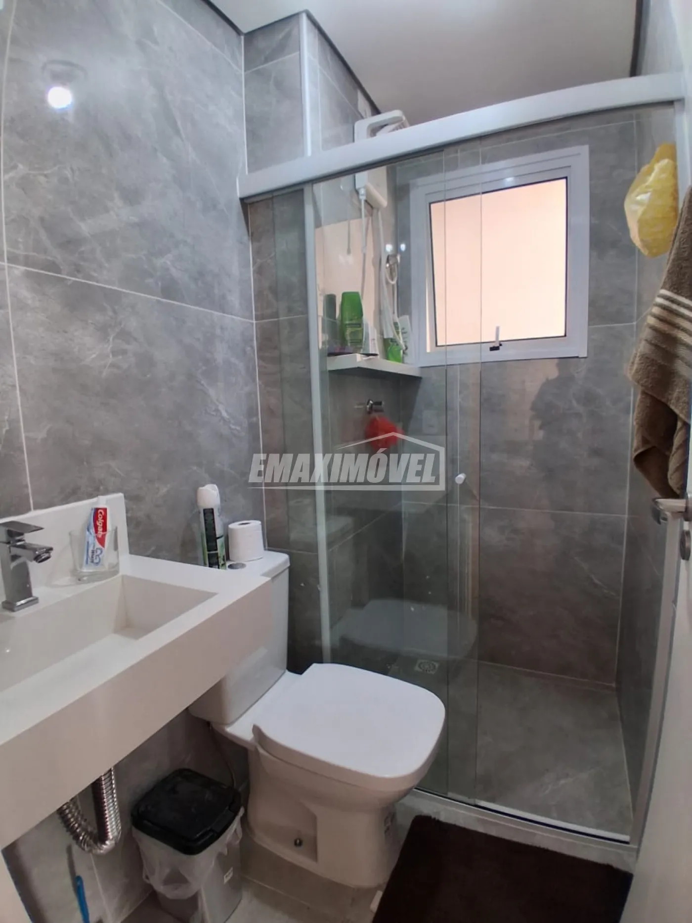 Banheiro social com box de vidro blindex