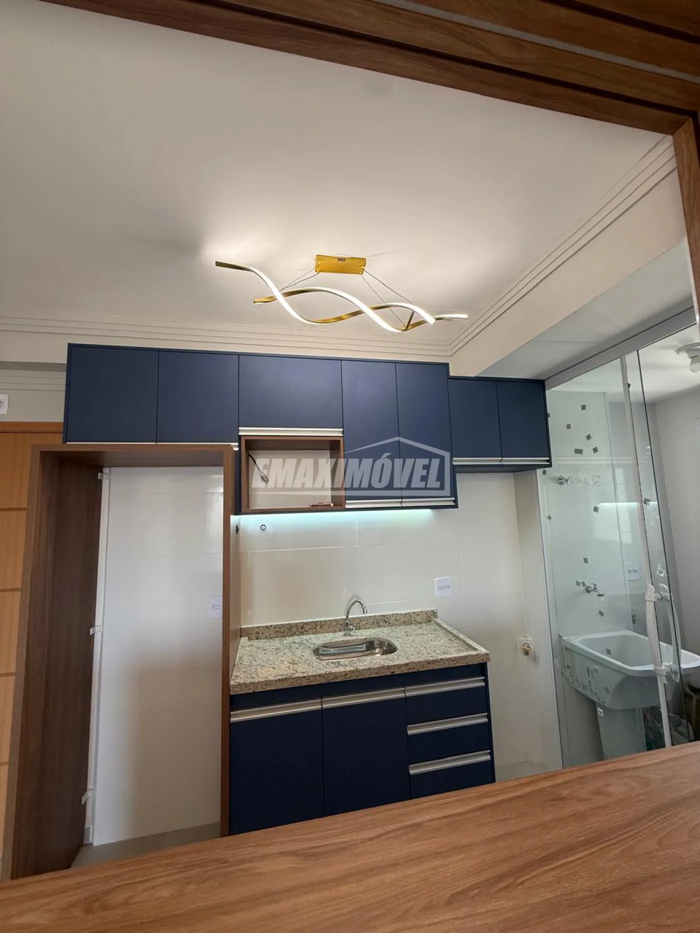 Área de serviço separada e fechada com blindex, também com armário