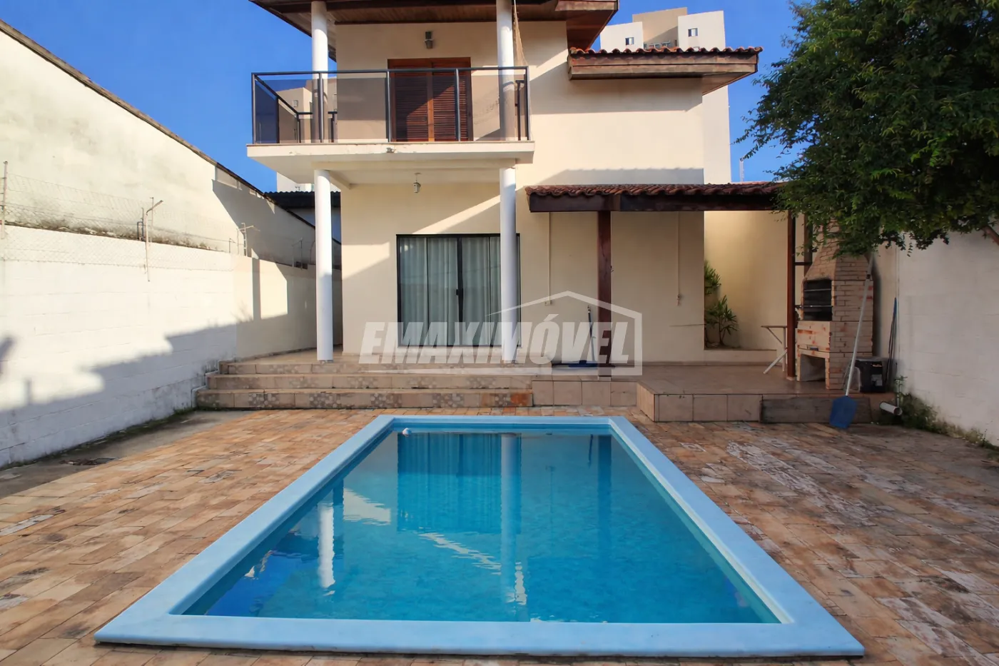 Quintal com piscina e churrasqueira