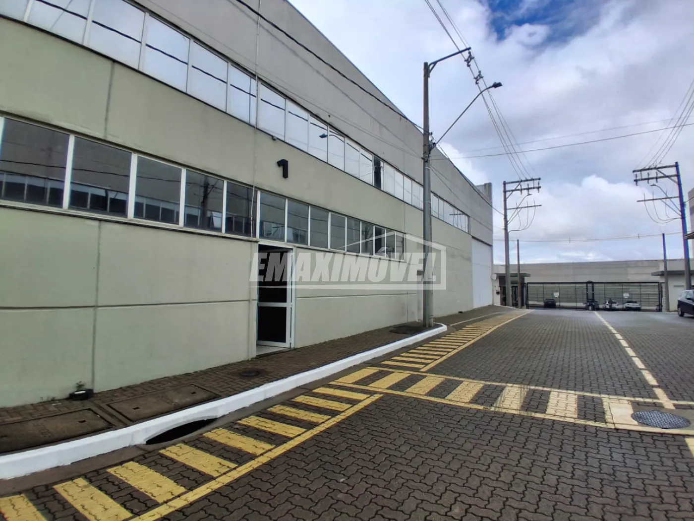 Galpão principal com duas entradas independentes para veículos e caminhões