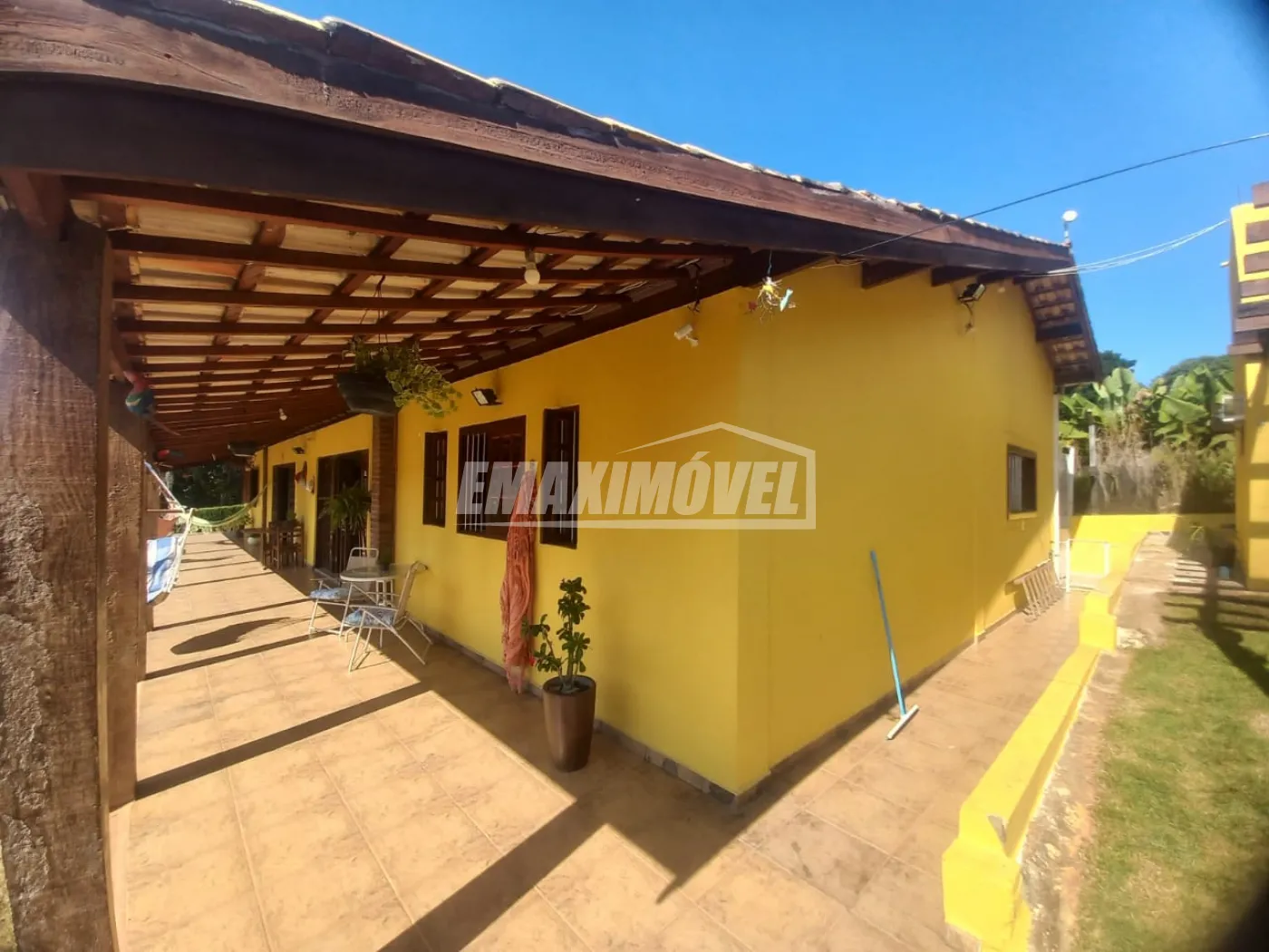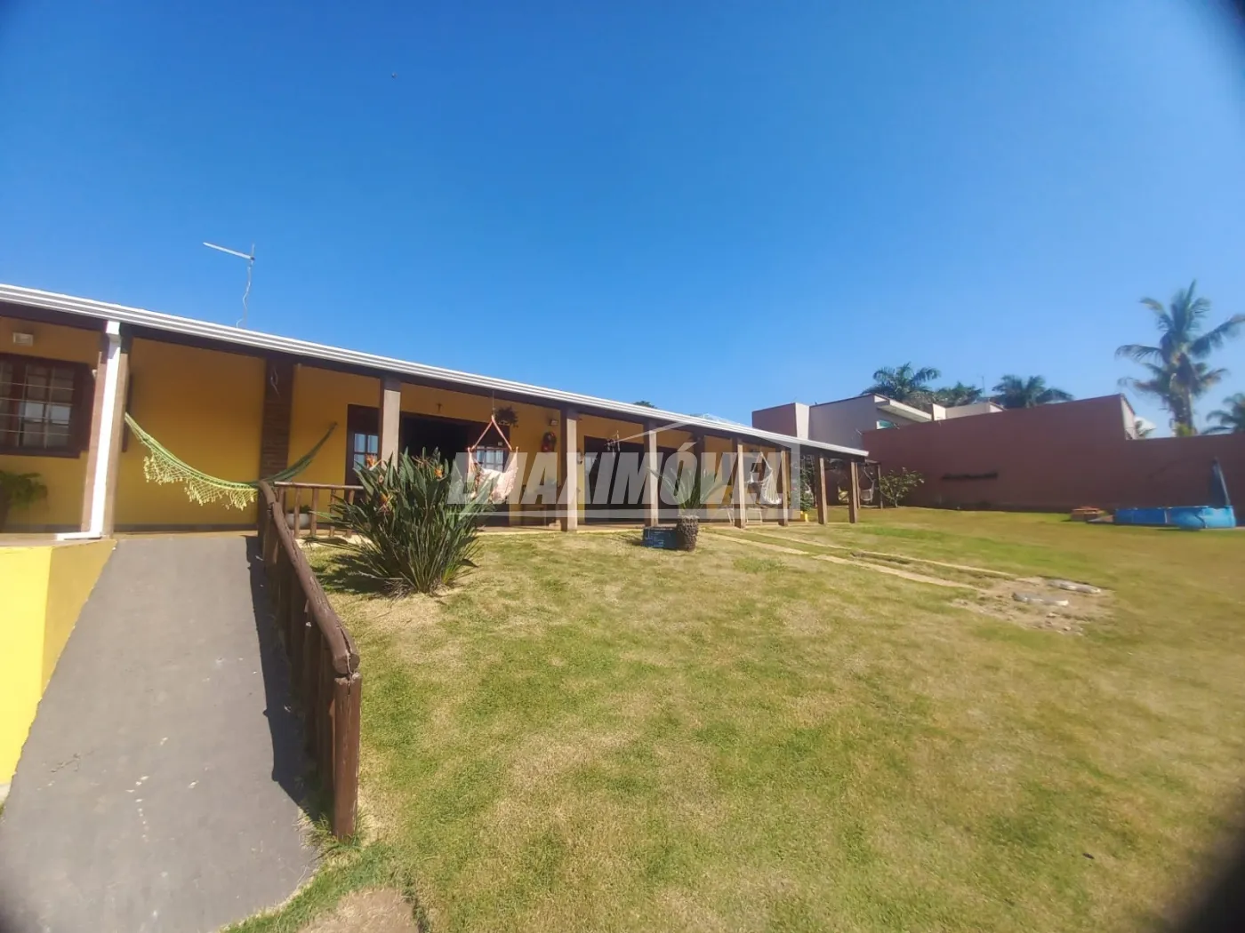 Chácara totalmente construída em piso frio, tijolinho comum a vista 271mt² de edificação, teto alto com forro em cedrinho, portas e janelas de madeira com vidro liso. Portas largas e rampa de acesso.