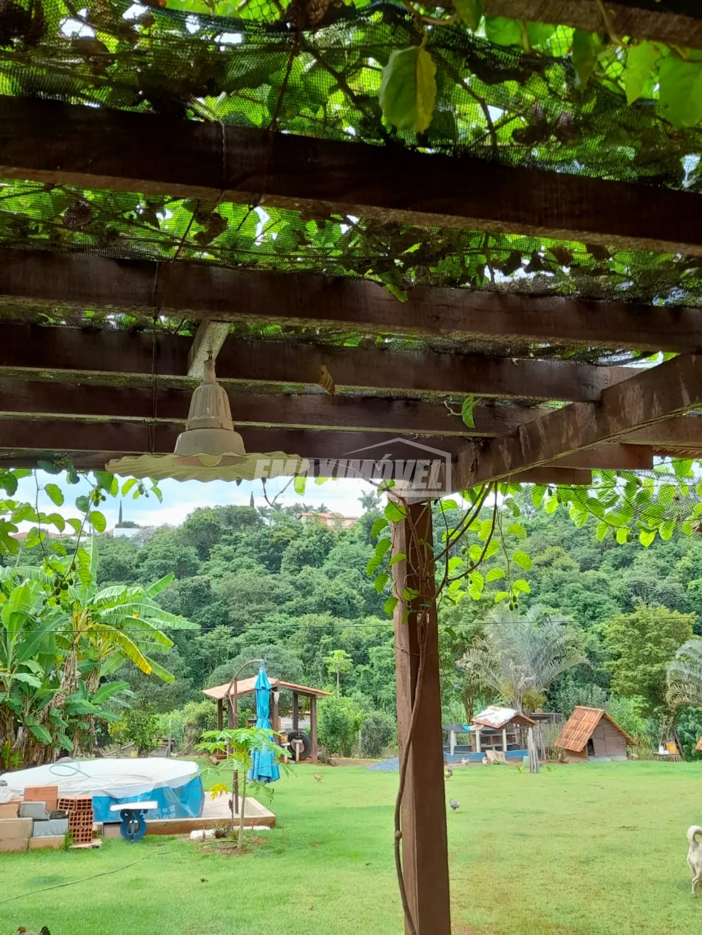 Varanda frontal que pode ser expandida ao redor da casa, canil grande, chalé canil e chalé galinheiro, maternidade para pintinhos e/ou aves aquáticas, piscininha para aves aquáticas, espaço e terra excelente para horta.