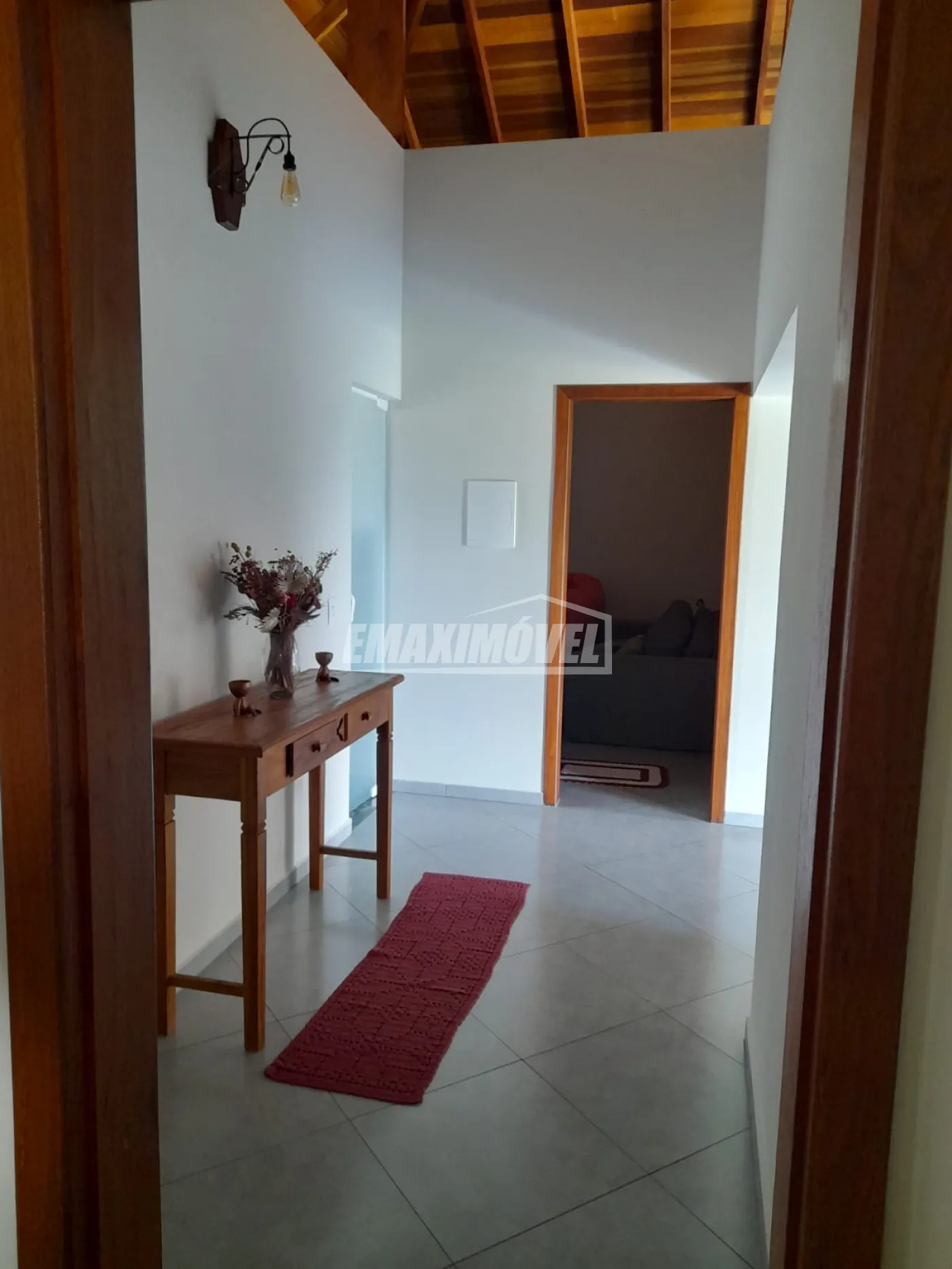 Toda a extensão da casa forrada em madeira.