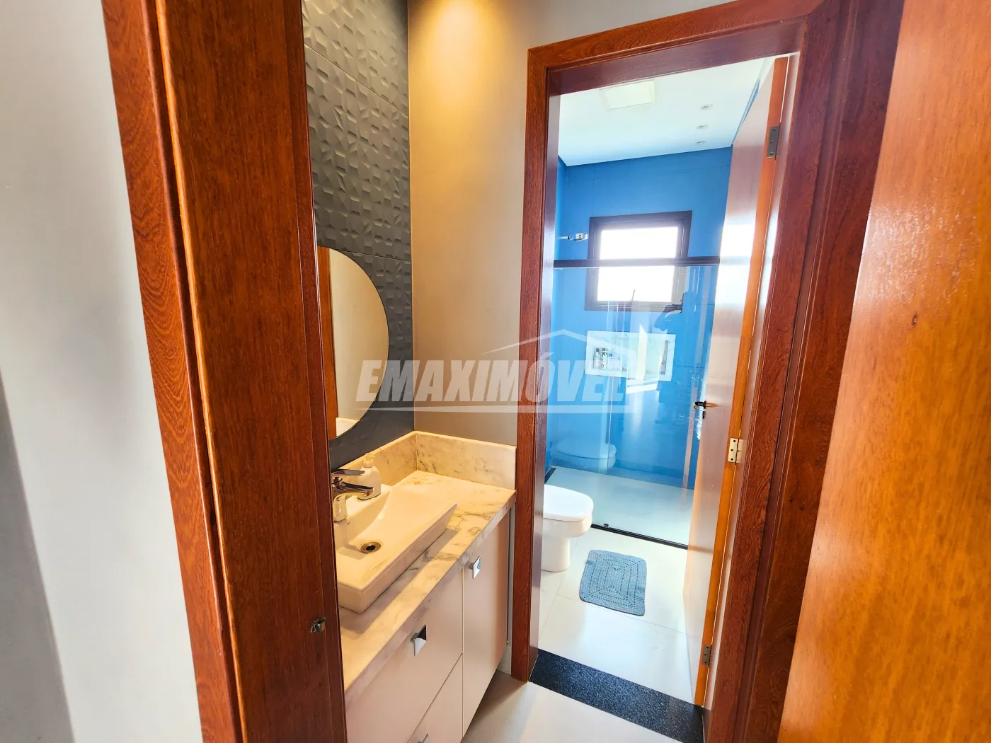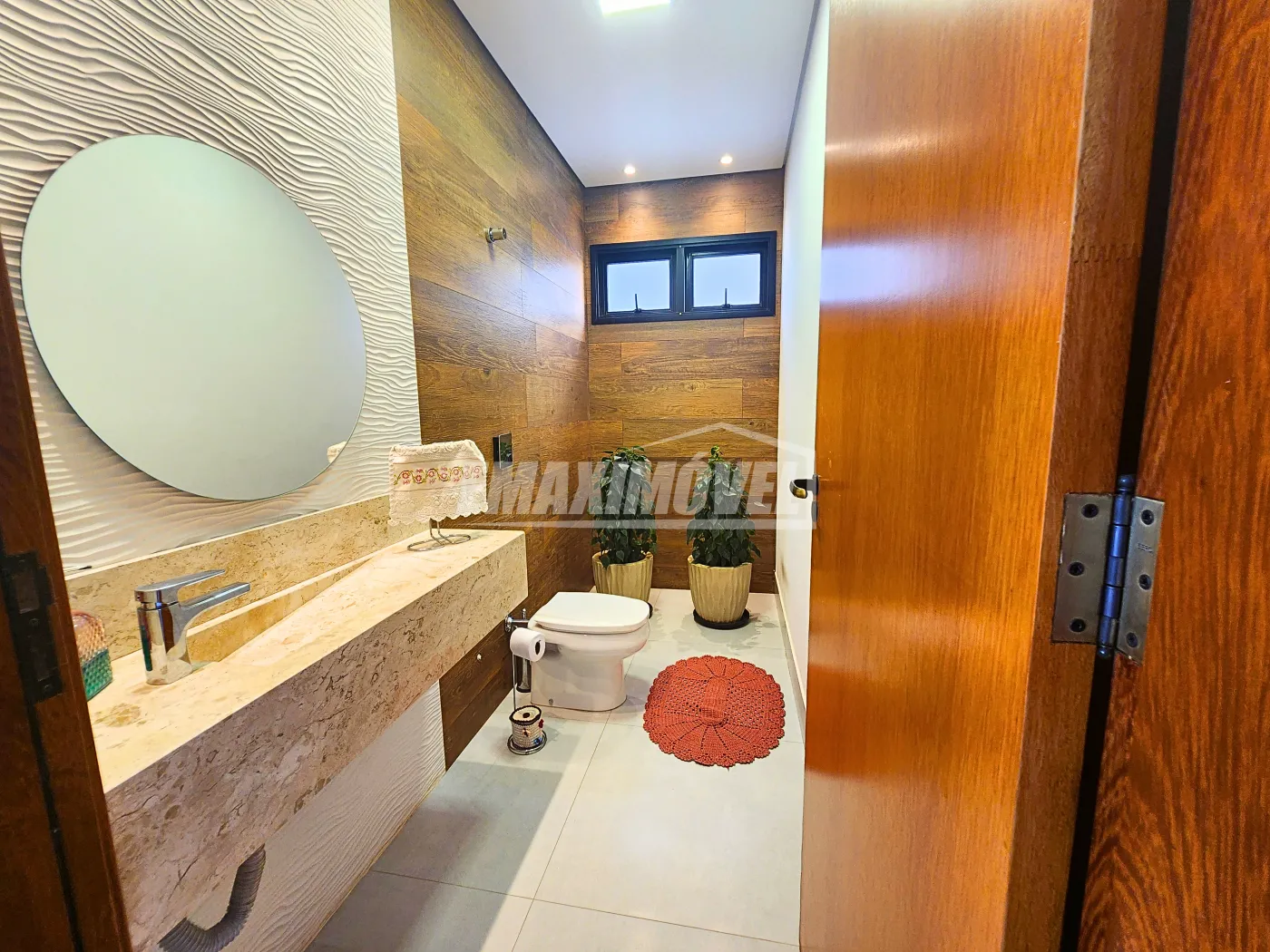?Lavabo interno com o nobre mármore Travertino Romano e lavabo externo para piscina com mármore Cinza Prime ao todo são 6 banheiros.
