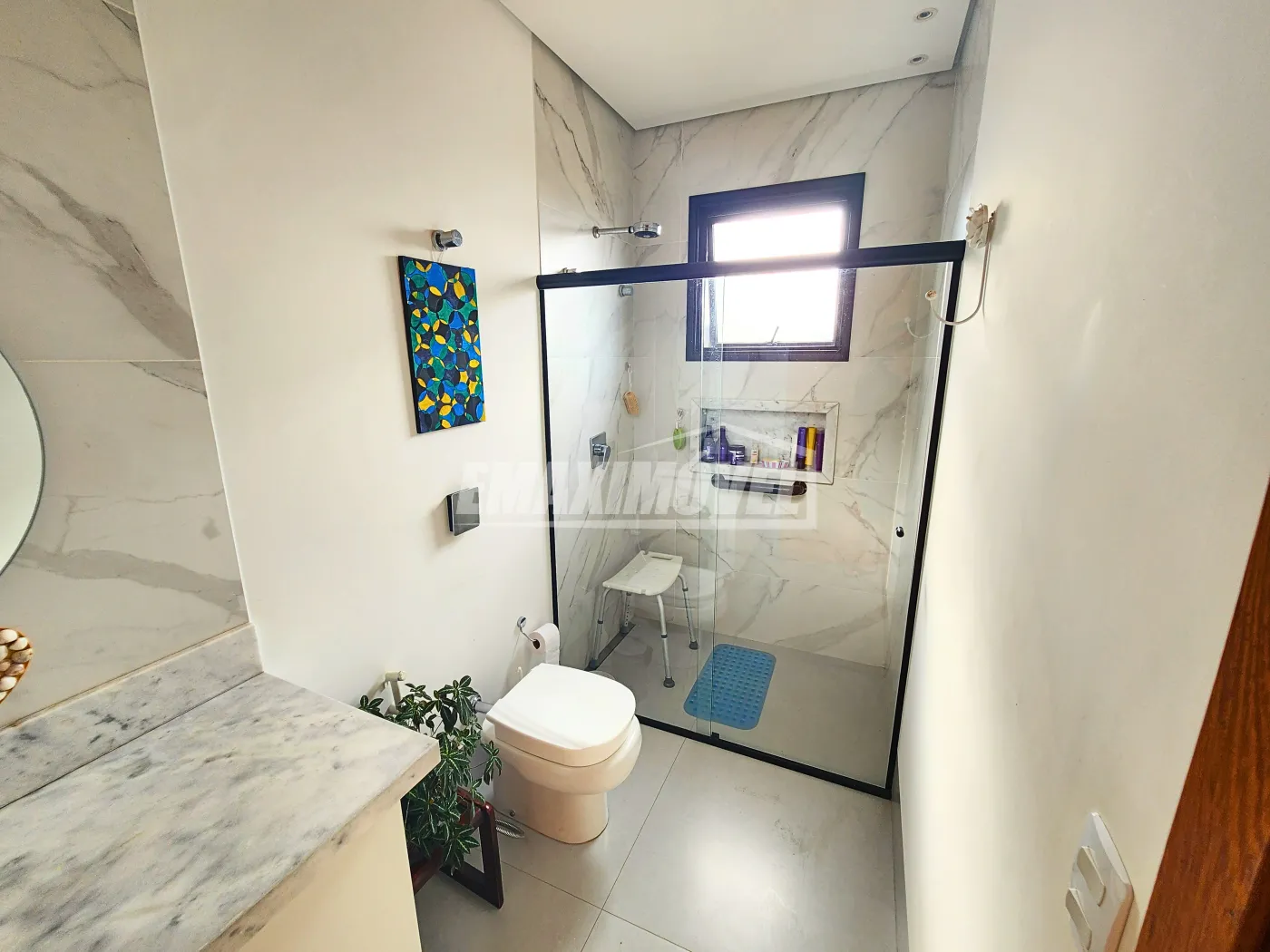 ?4 suítes sendo 3 com closet, todos banheiros com nichos em mármore iluminados por led.