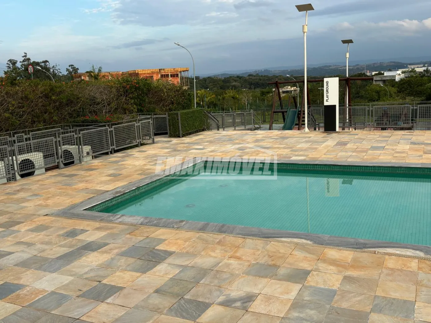 Além disso, o condomínio é novo, possui muitas obras em construção e famílias morando, tem um clube magnifico com quadras de ténis, quadra poliesportiva, piscinas de borda infinita, academia para 18 pessoas, brinquedoteca, salão de festas com capacidade de 288 pessoas, cozinha completa, mesas, cadeiras, banquetas etc.