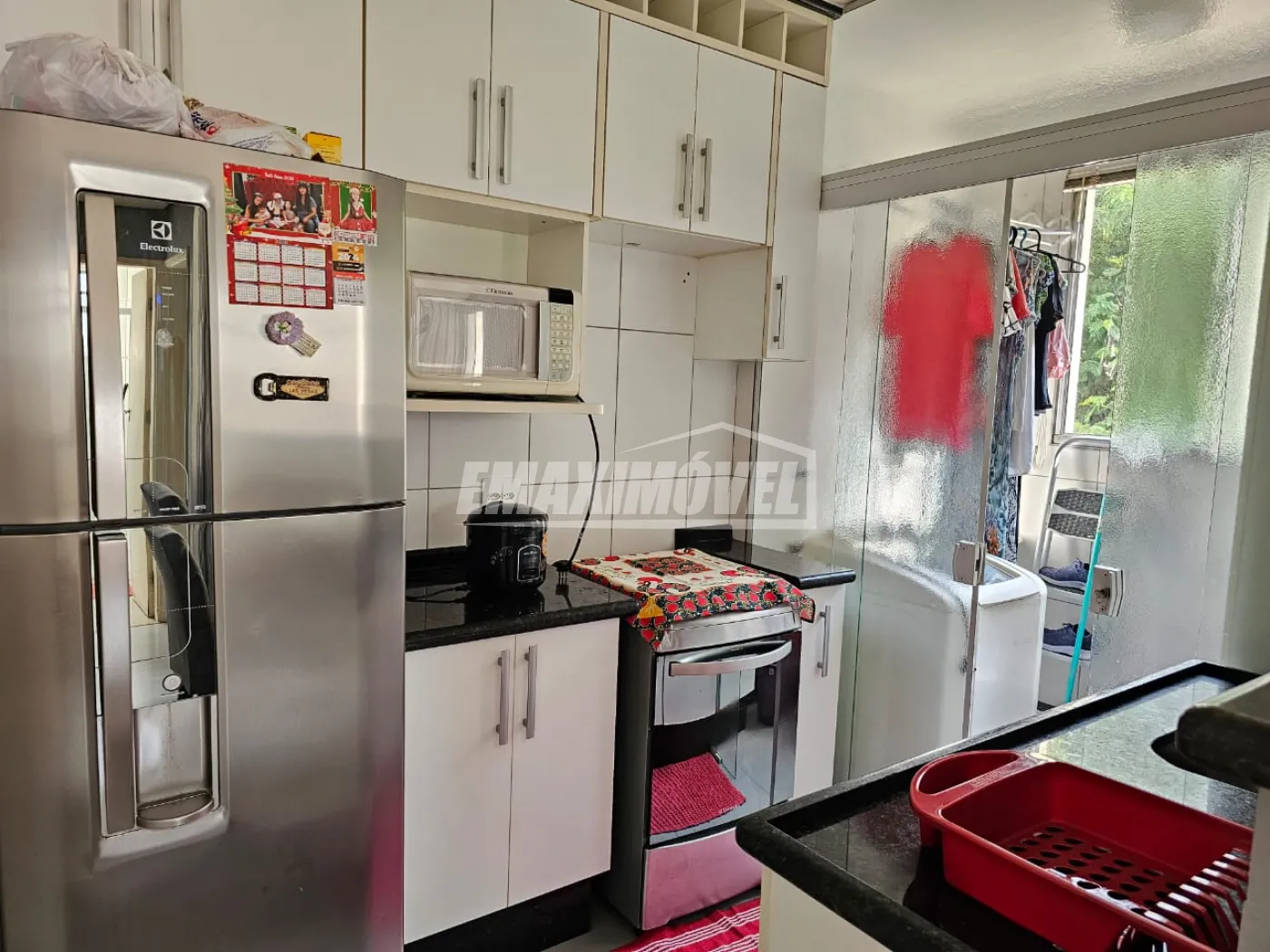 Cozinha e lavanderia com móveis planejados.