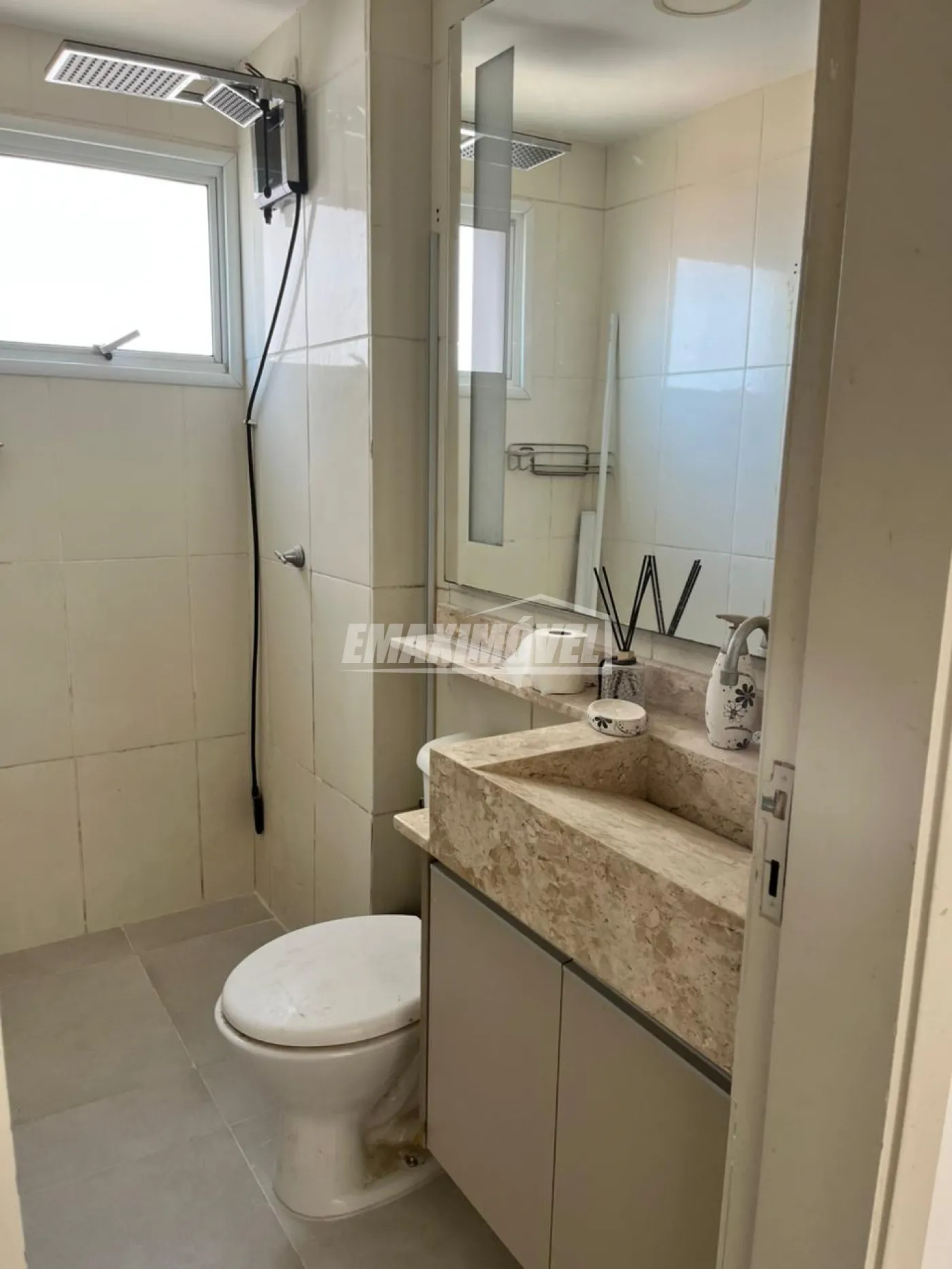 Banheiro social com gabinete e box blindex