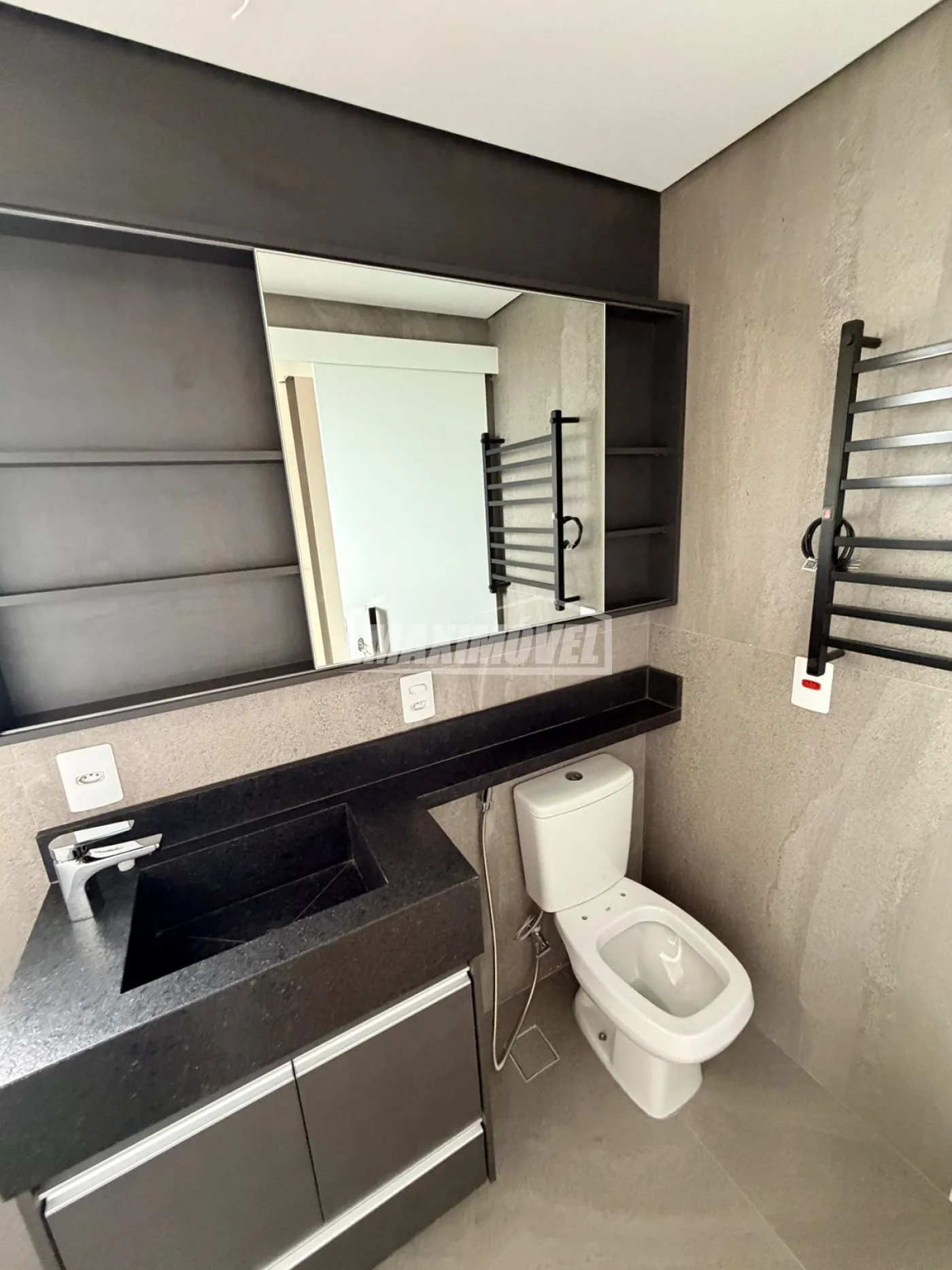 São 2 suítes com armários modulados e banheiros com modulados e aquecedor elétrico de toalhas