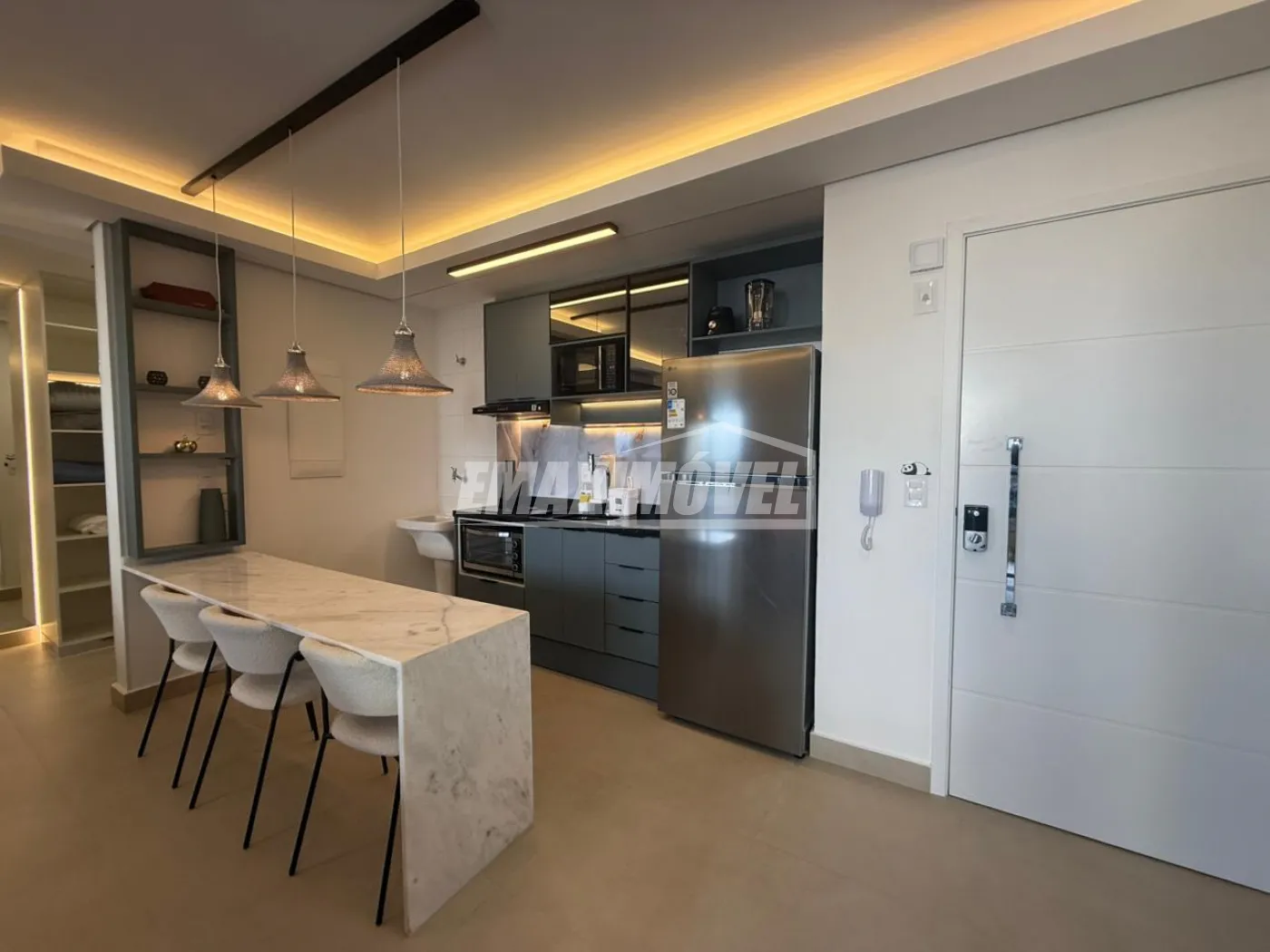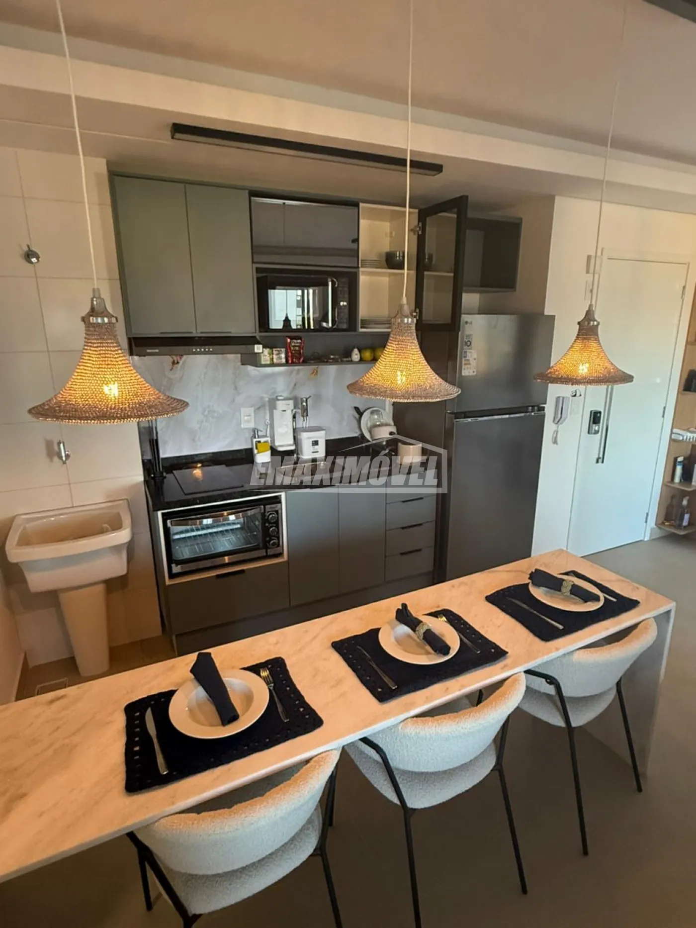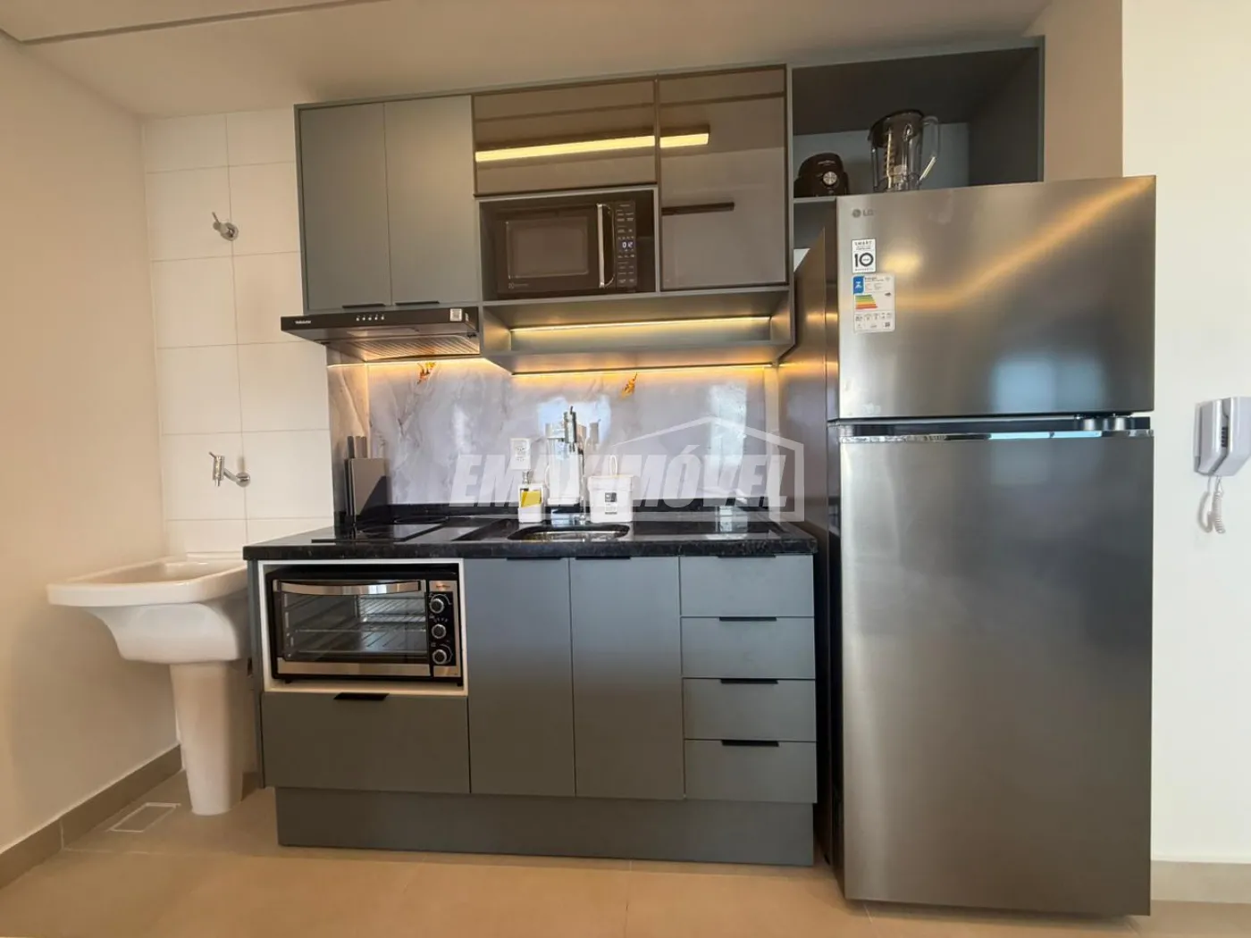 COZINHA: Geladeira Brastemp inox ( semi-nova ), Pia & Cuba, Torneira Nova, Pedra da pia em Granito Preta e Esverdeado, Microondas Eletrolux 23l inox ( novo ), Fogão c/ forno a gás GLP Brastemp 4 bocas inox ( novo ), Suggar ( Depurador semi- novo ) na cor preto, 1 Máquina de café 3 Corações ( Cápsula ), Airfryer Philips Walita ( nova ), Armários Embutidos ( Todeschini ), 2 Banquetas na cor Rosé ( semi novas ), Relógio na cor Rosé, 1 Escadinha de cozinha, Lâmpadas em LED e trilho de ajuste, Tapetes na cor bege, Cesto de lixo 30L na cor cromada.
