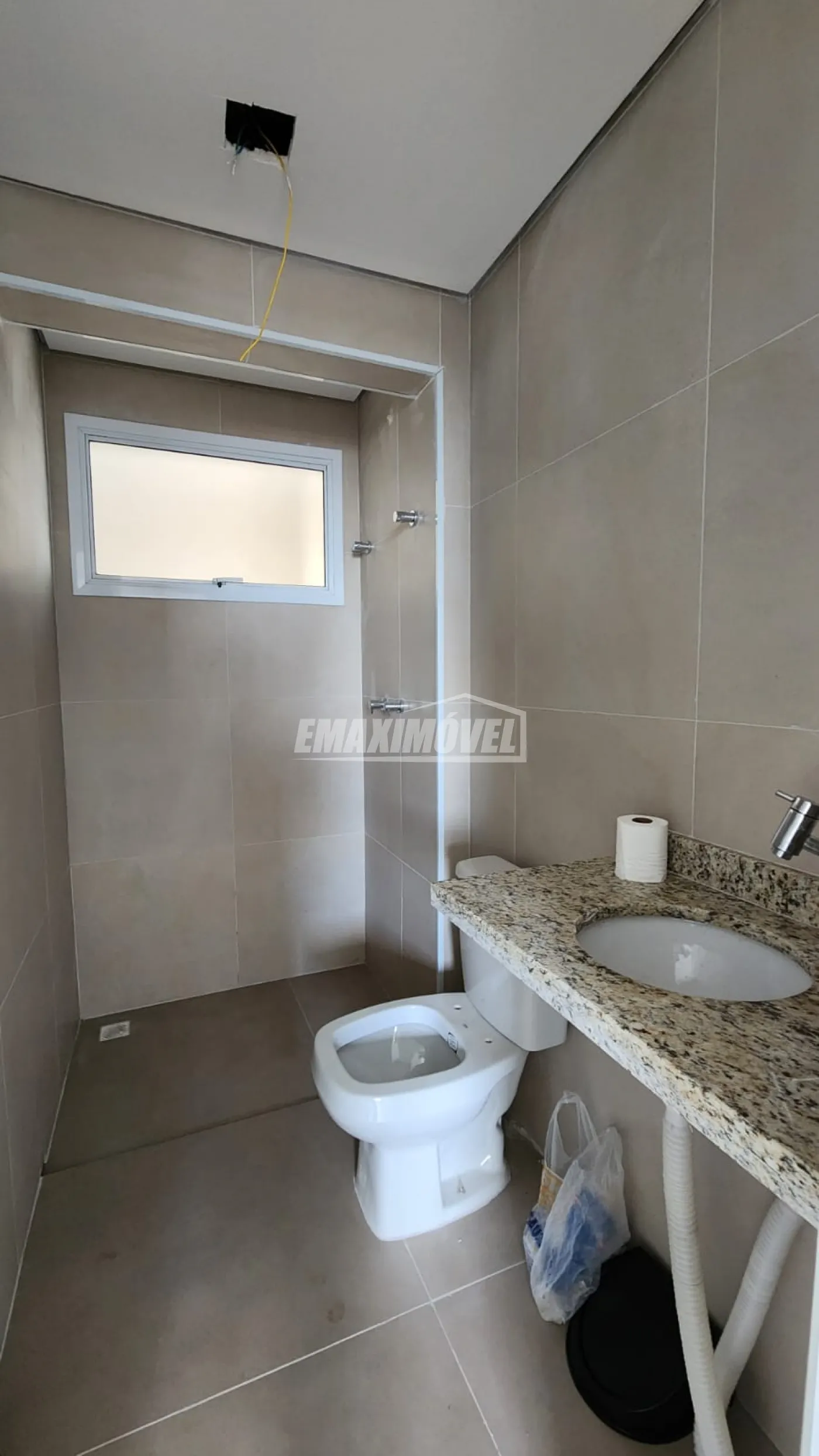 BANHEIRO SOCIAL: Box banheiro, Chuveiro Ducha Forte Lorenzetti Branco, Espelho Grande, Gabinete e cuba, Torneira nova, Suporte Papel higiênico na cor cromada, Cesto de lixo na cor cromada, Suporte de sabonete de canto em vidro, Tapete cinza claro, Suporte cromado de toalha de rosto.