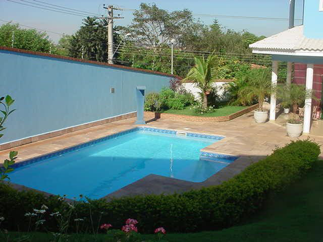 Agradável área gourmet com churrasqueira, piscina, quintal: grande, com piso gramado,