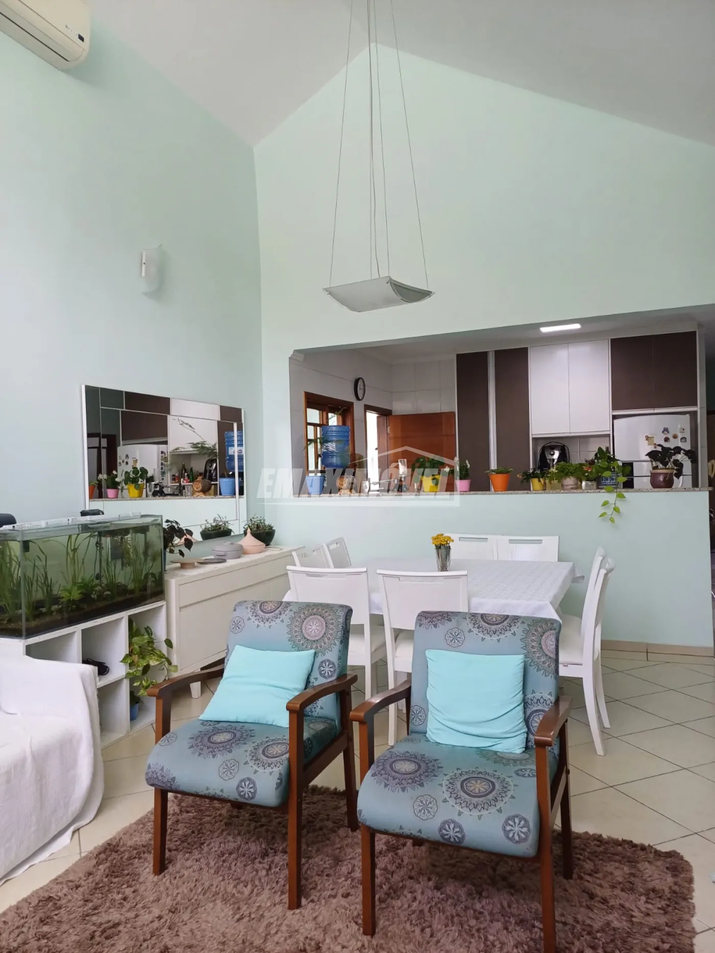 Sala de estar integrada com sala de jantar, com ar condicionado