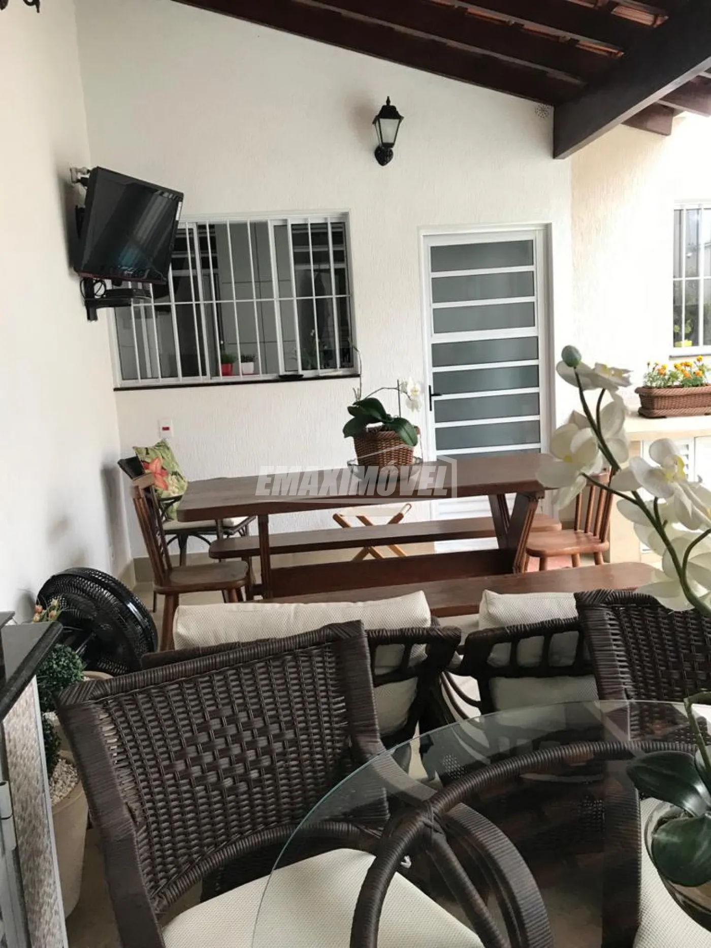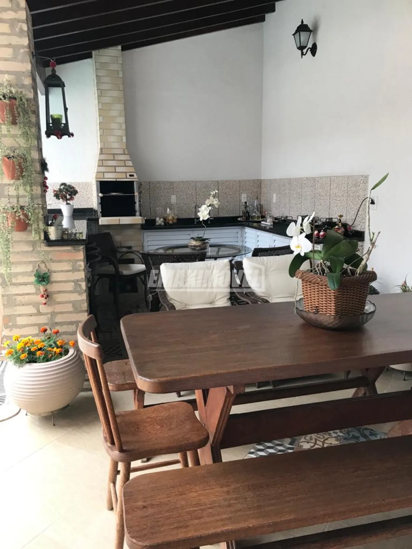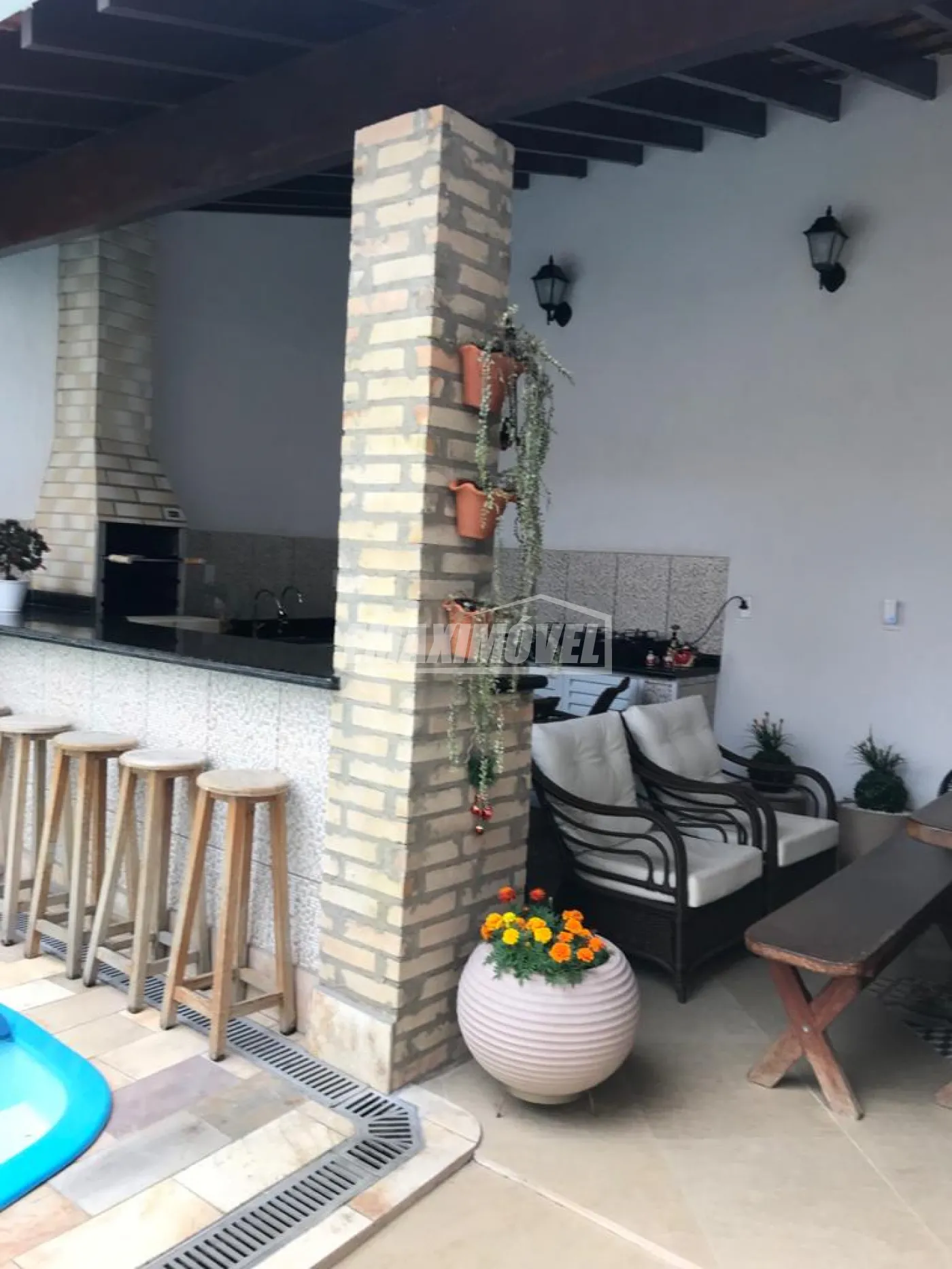 Sobrado com 3 dormitórios sendo 1 suíte. Suíte e um quarto com armários. Sala com lavabo, cozinha planejada, área de serviços com despensa e banheiro de empregada. Garagem para 4 carros com 2 cobertos, Piscina e área gourmet com cooktop, armários e balcões. Ar condicionado, câmeras de vigilância e cerca elétrica.