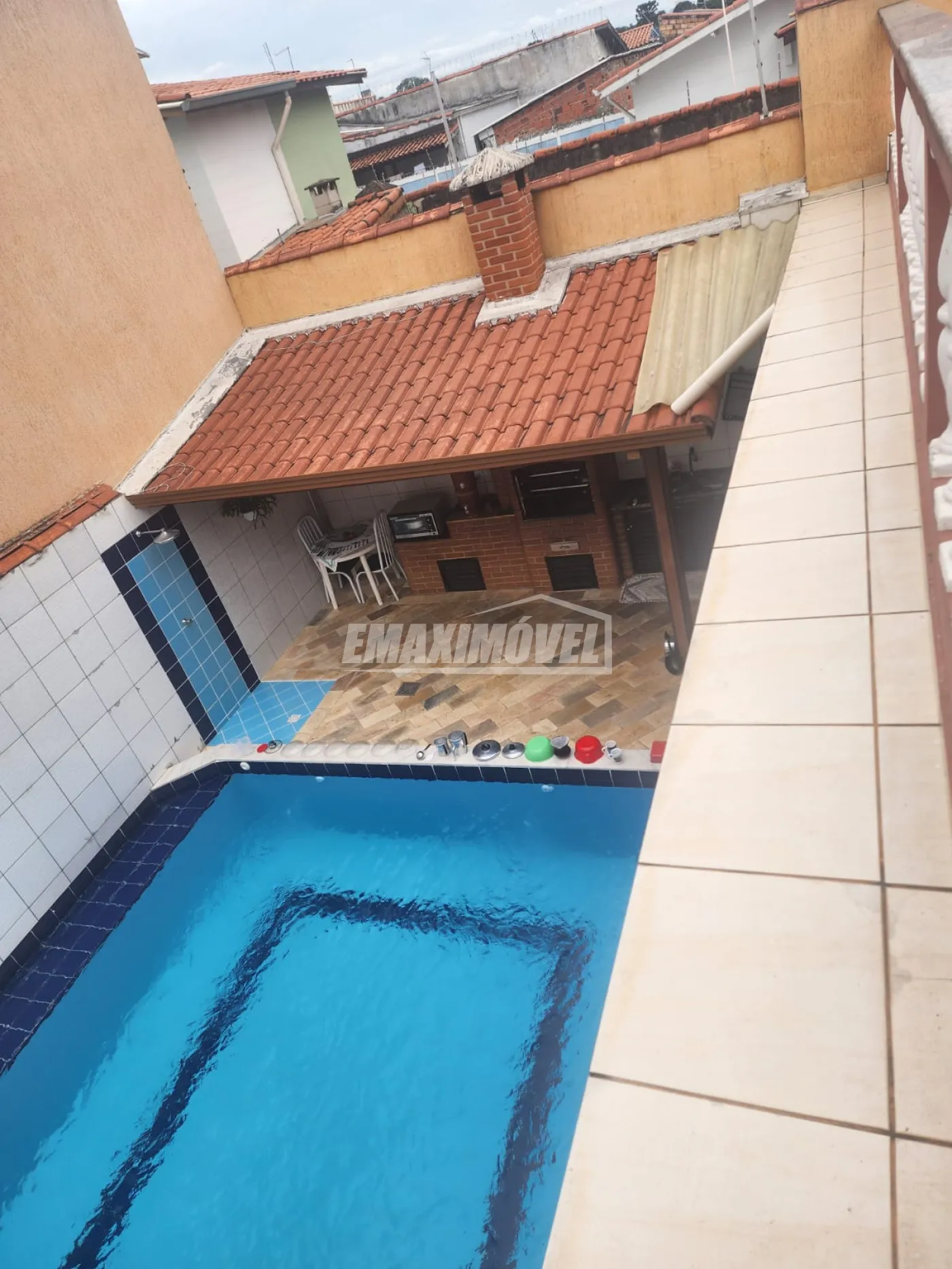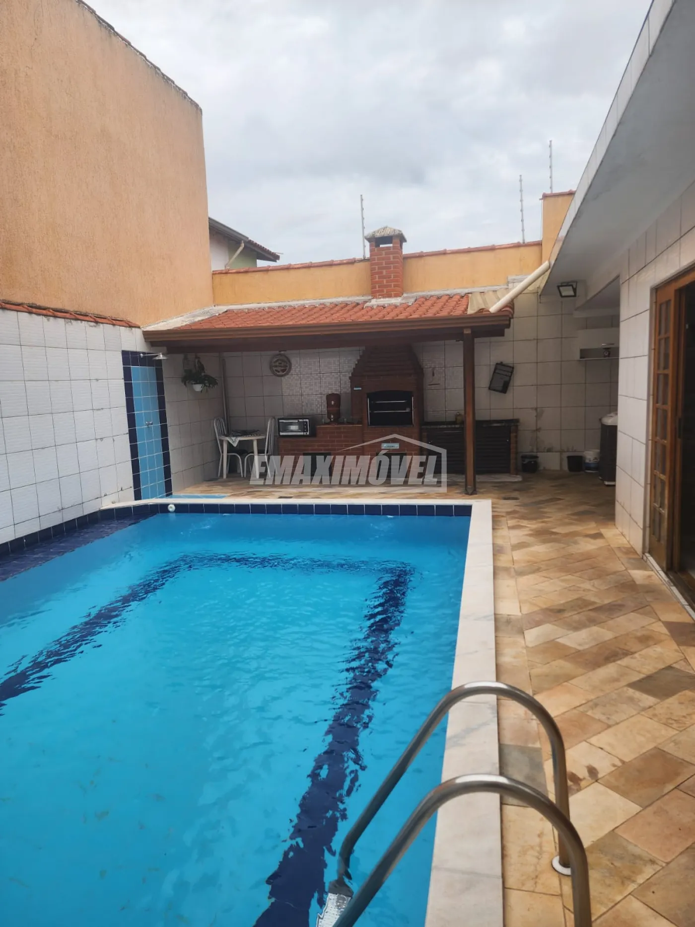 Área gourmet com piscina, churrasqueira de alvenaria com fogão a lenha , e pia