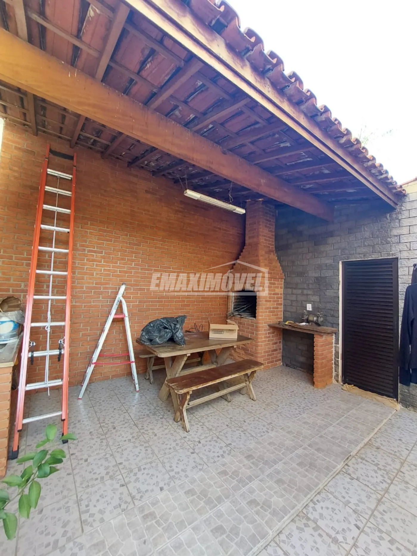 Quintal com espaço gourmet completo e churrasqueira