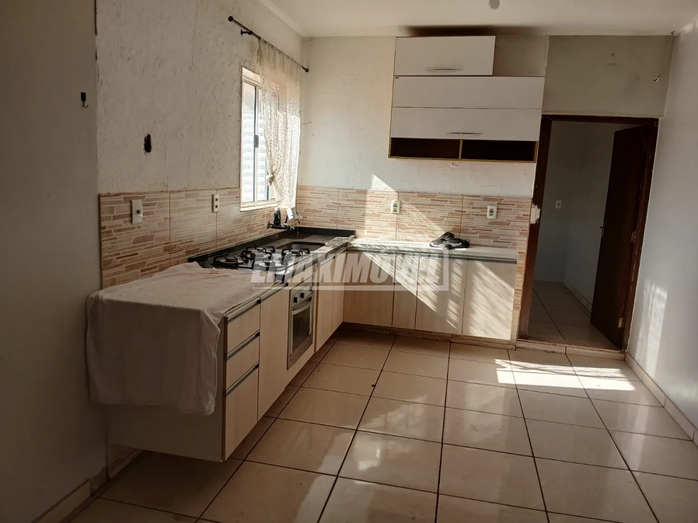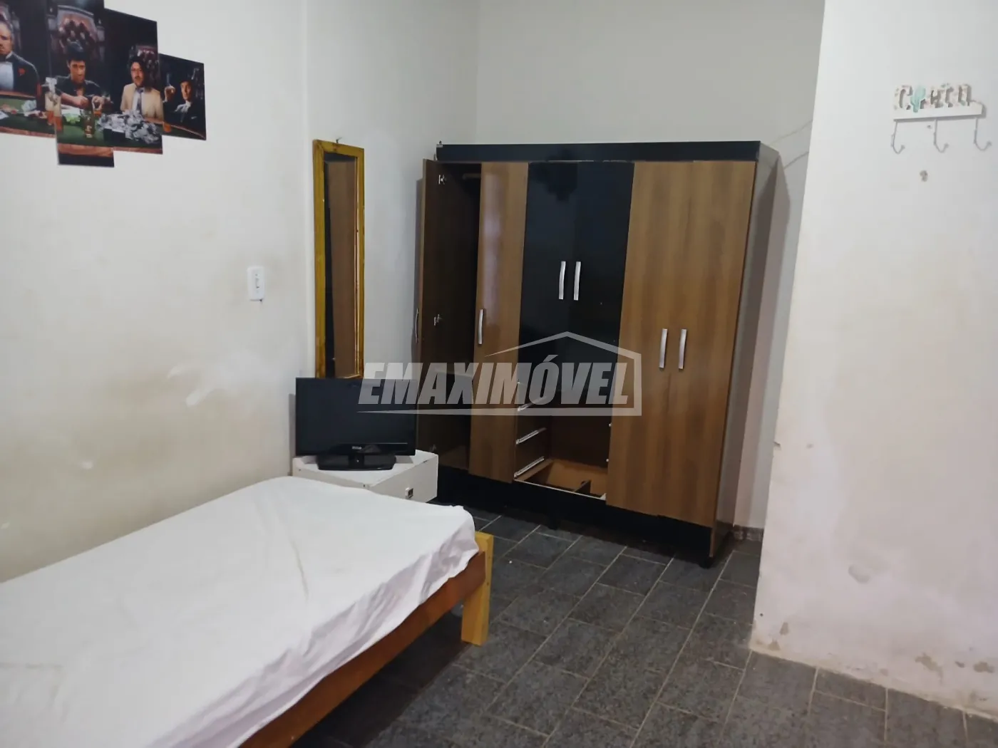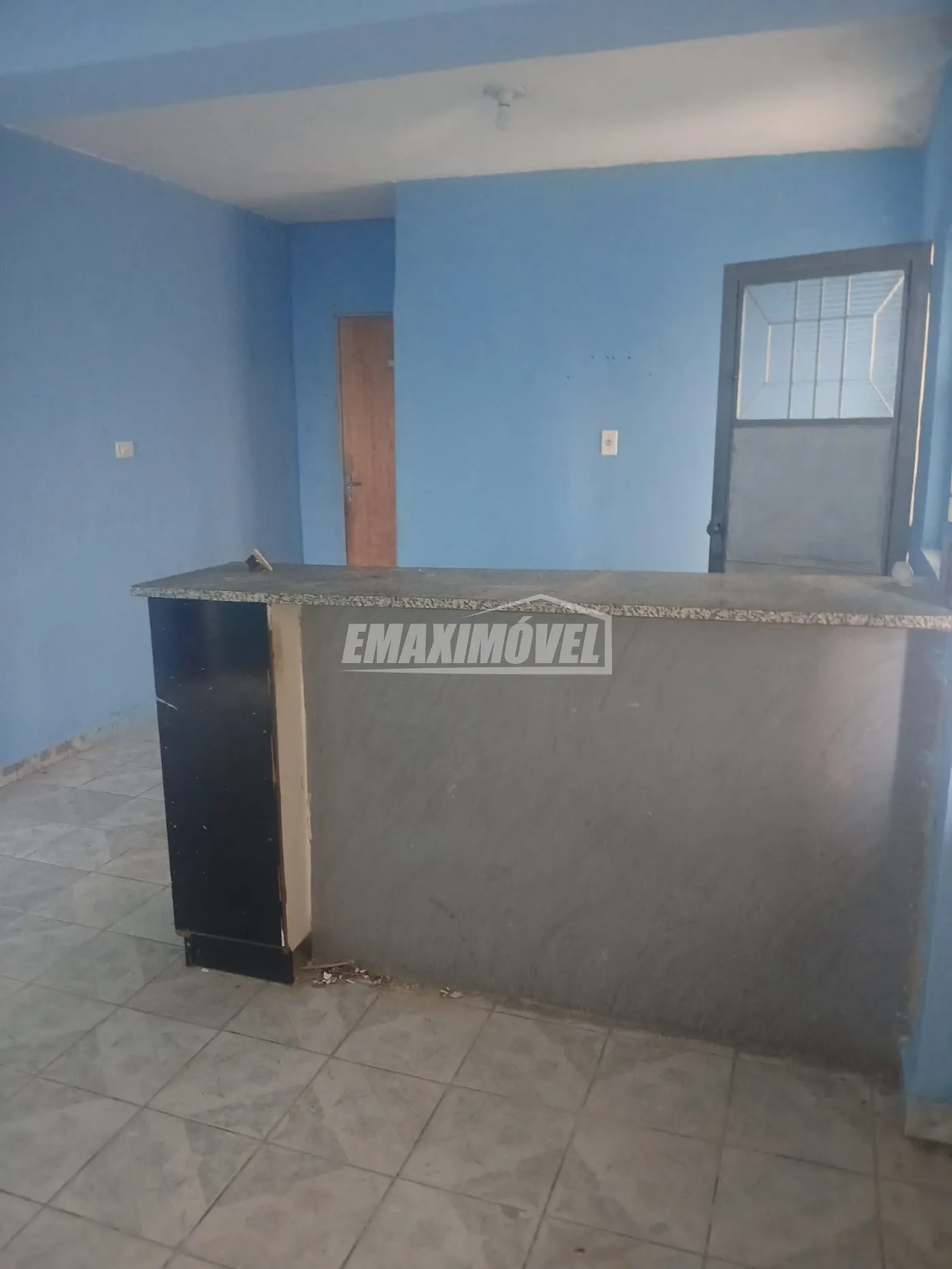 Quarto, cozinha, lavanderia, cozinha e copa conjugados, acabamento simples.