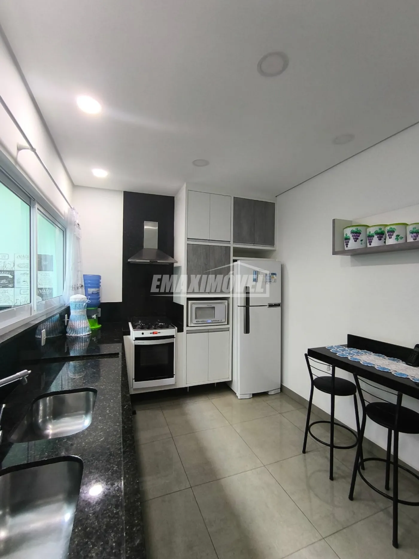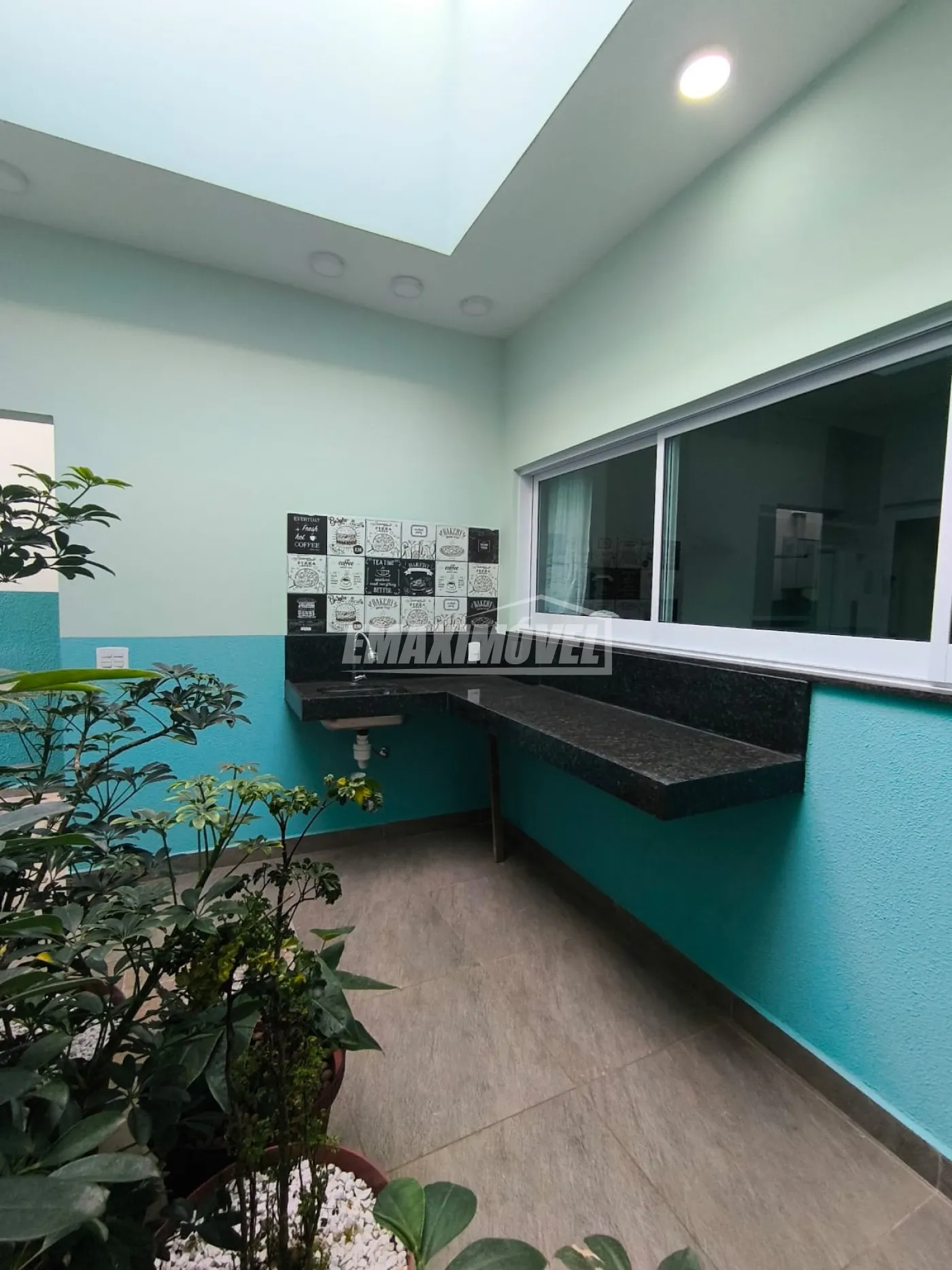 Área gourmet hiper agradável para eventos exclusivamente da família ou com convidados. Está estrategicamente situada entre a respectiva sala e a cozinha e tem acesso através de portas esquadria branca 3 folhas vidro verde com muito estilo.