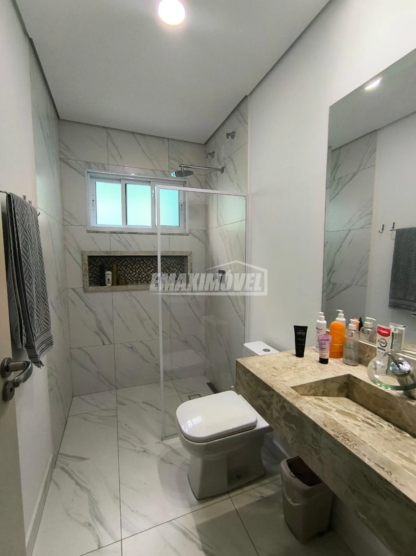 As três suítes possuem banheiros privativos padronizados com pias esculpidas mármore travertino romano, torneiras alto padrão, box folha única, nicho iluminado, ralos lineares e imenso espelho harmônico.