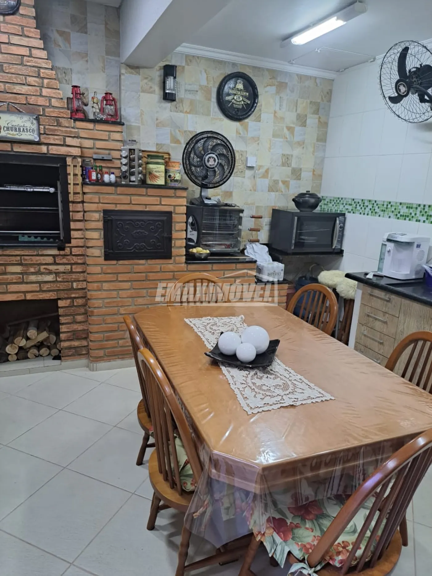 Área gourmet com churrasqueira, forno e fogão a lenha