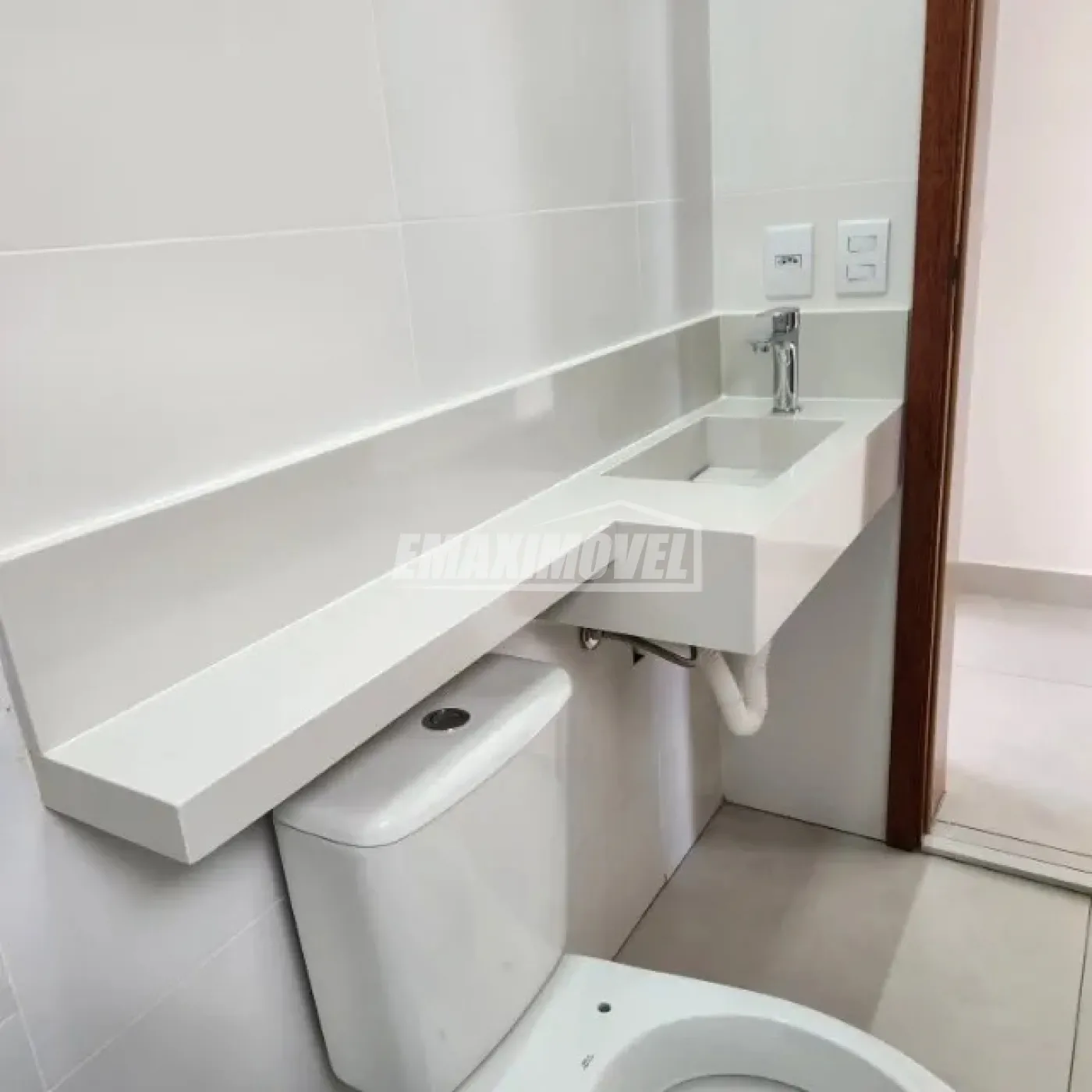 Revestimentos em porcelanatos de grandes formatos, cubas esculpidas nos banheiros, iluminação pronta.