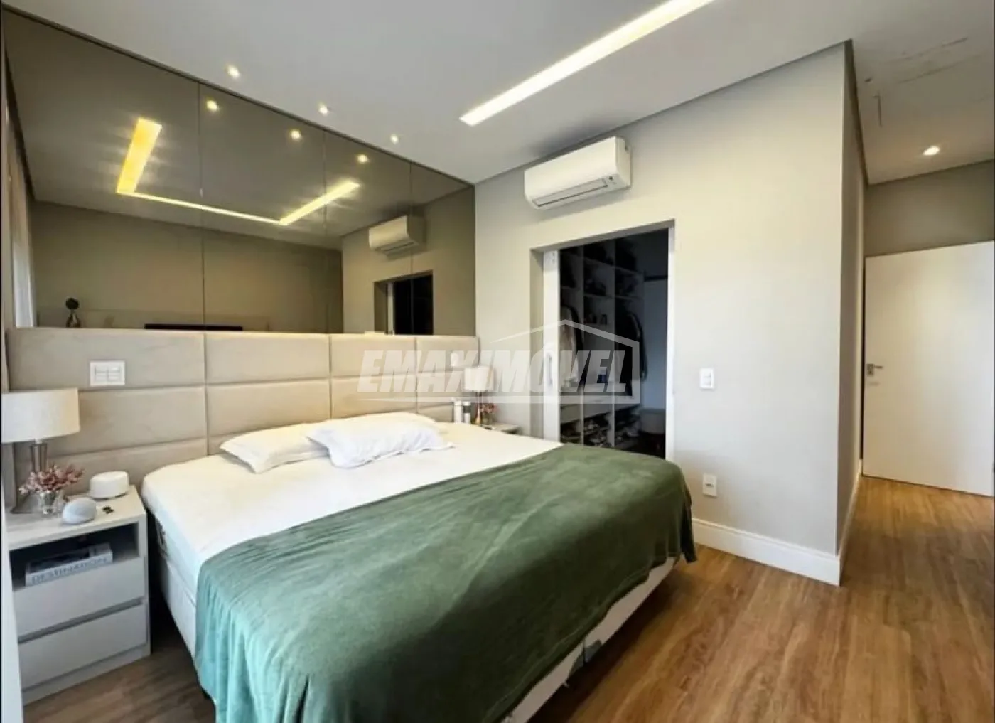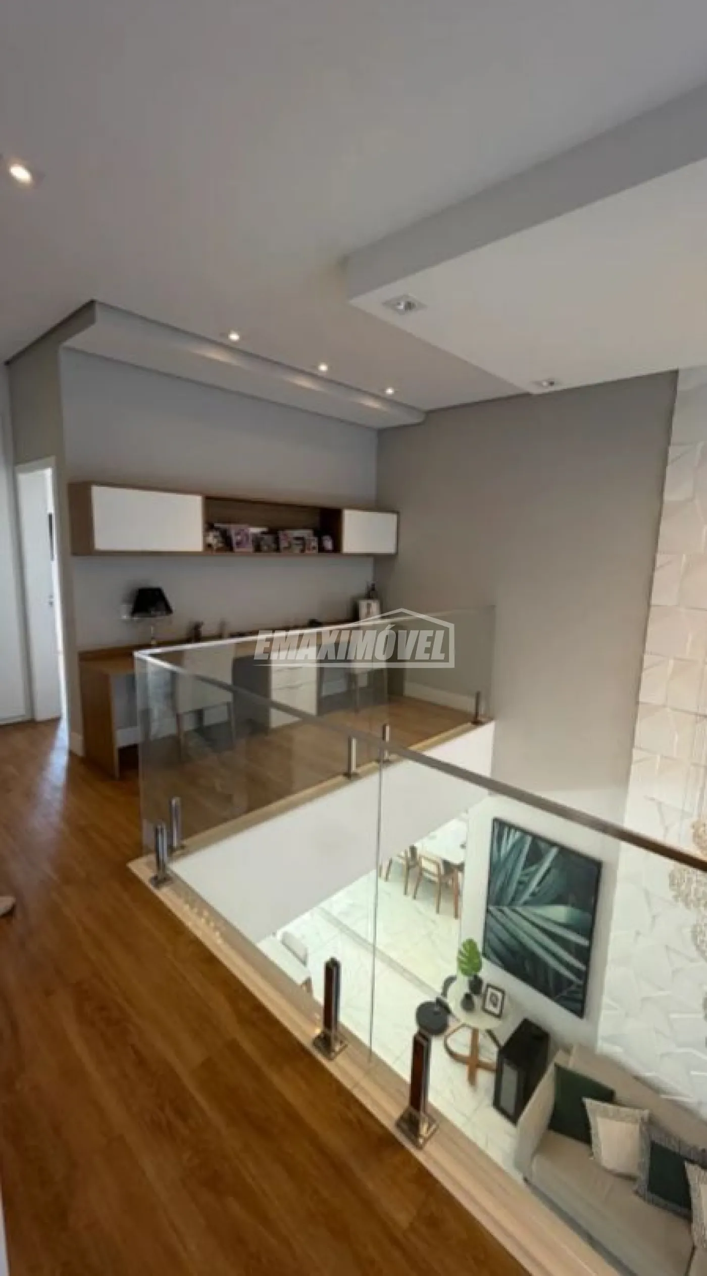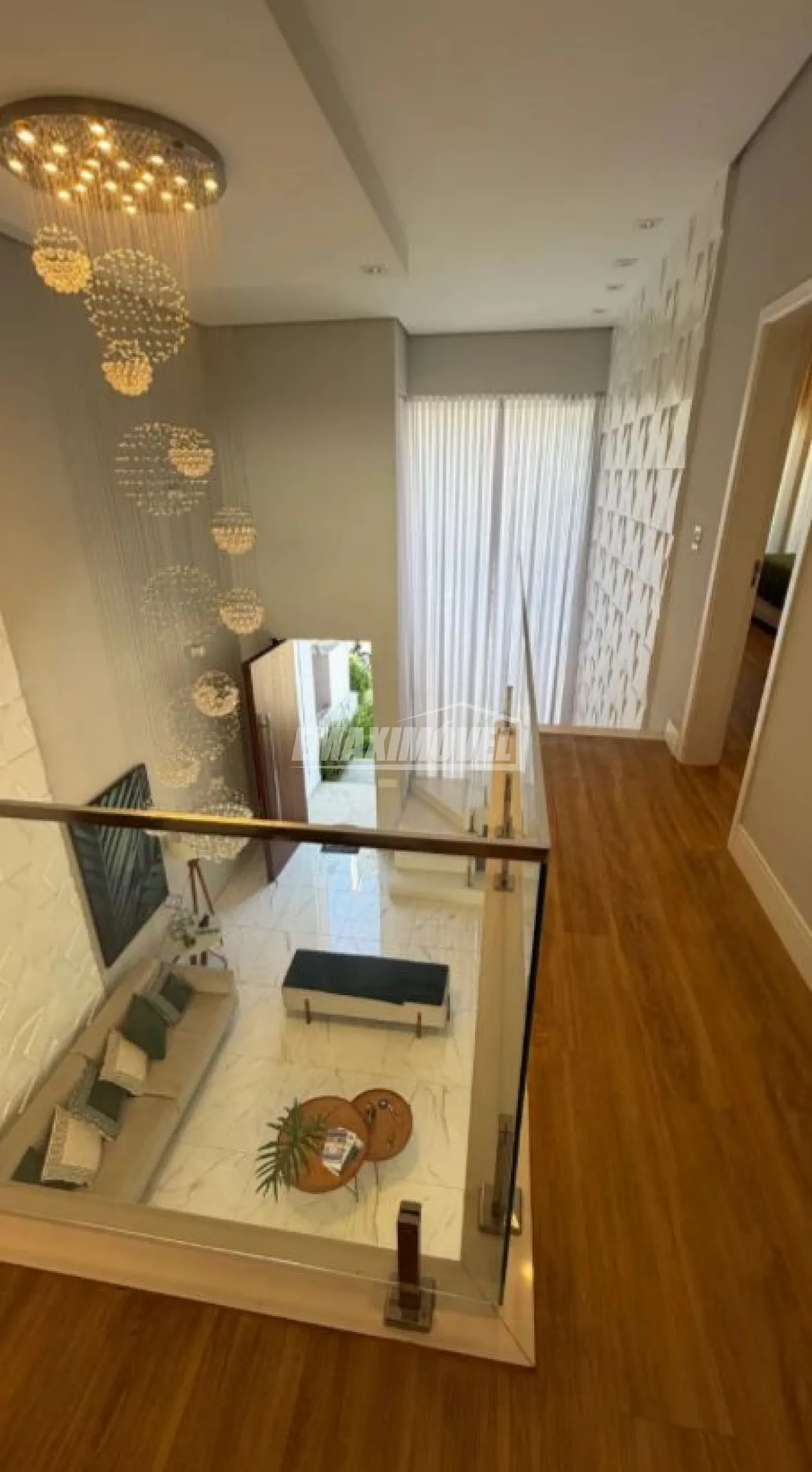 Casa contendo 3 suítes avarandadas com portas automatizadas por controle, todas com ar condicionado , Tv, Planejados e decorados com sacadas com guarda corpo em vidro em todos os quartos.