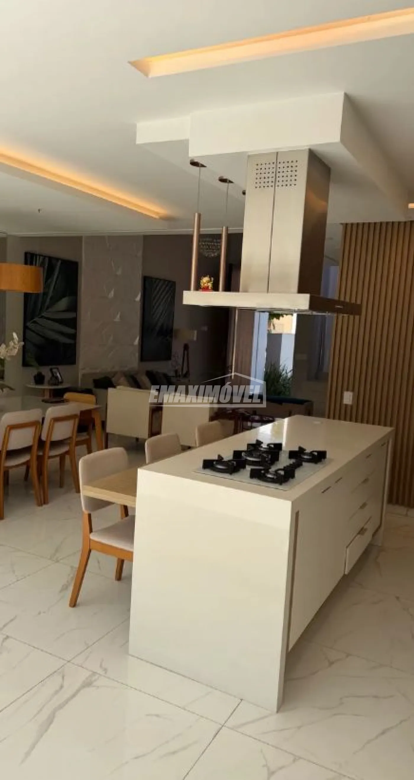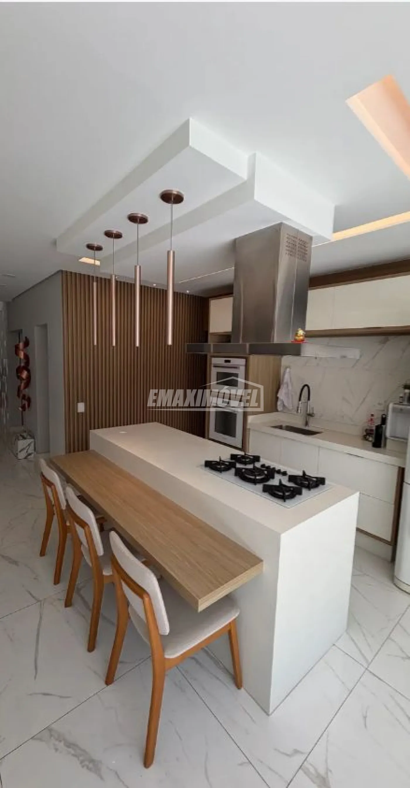 Ilha equipada , bancada branca em pedra,