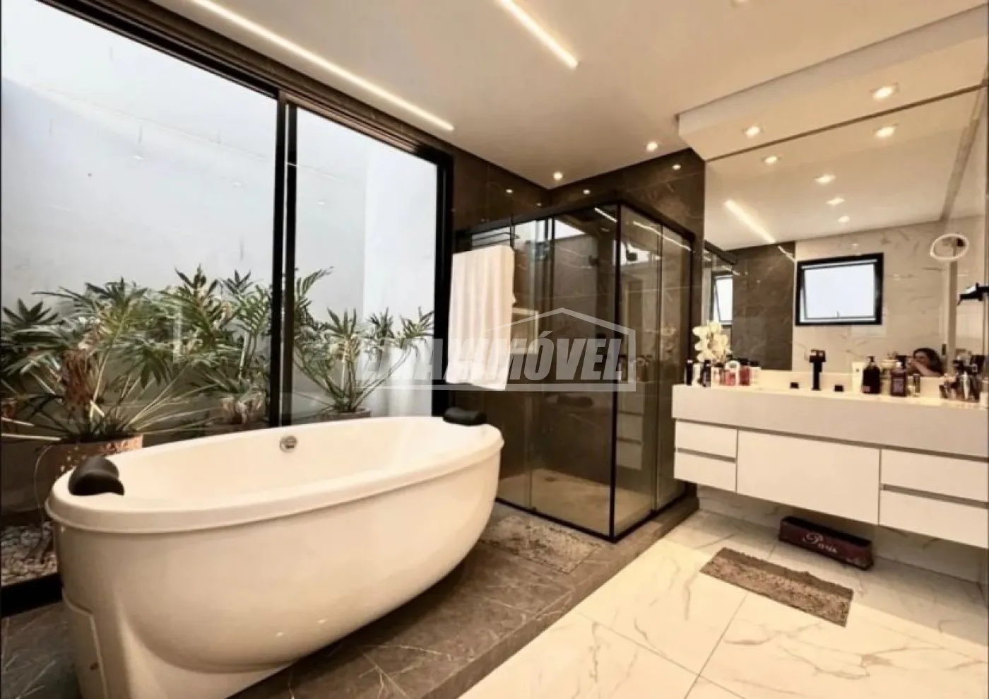 Suíte master com closet e banheira de imersão com jardim de inverno