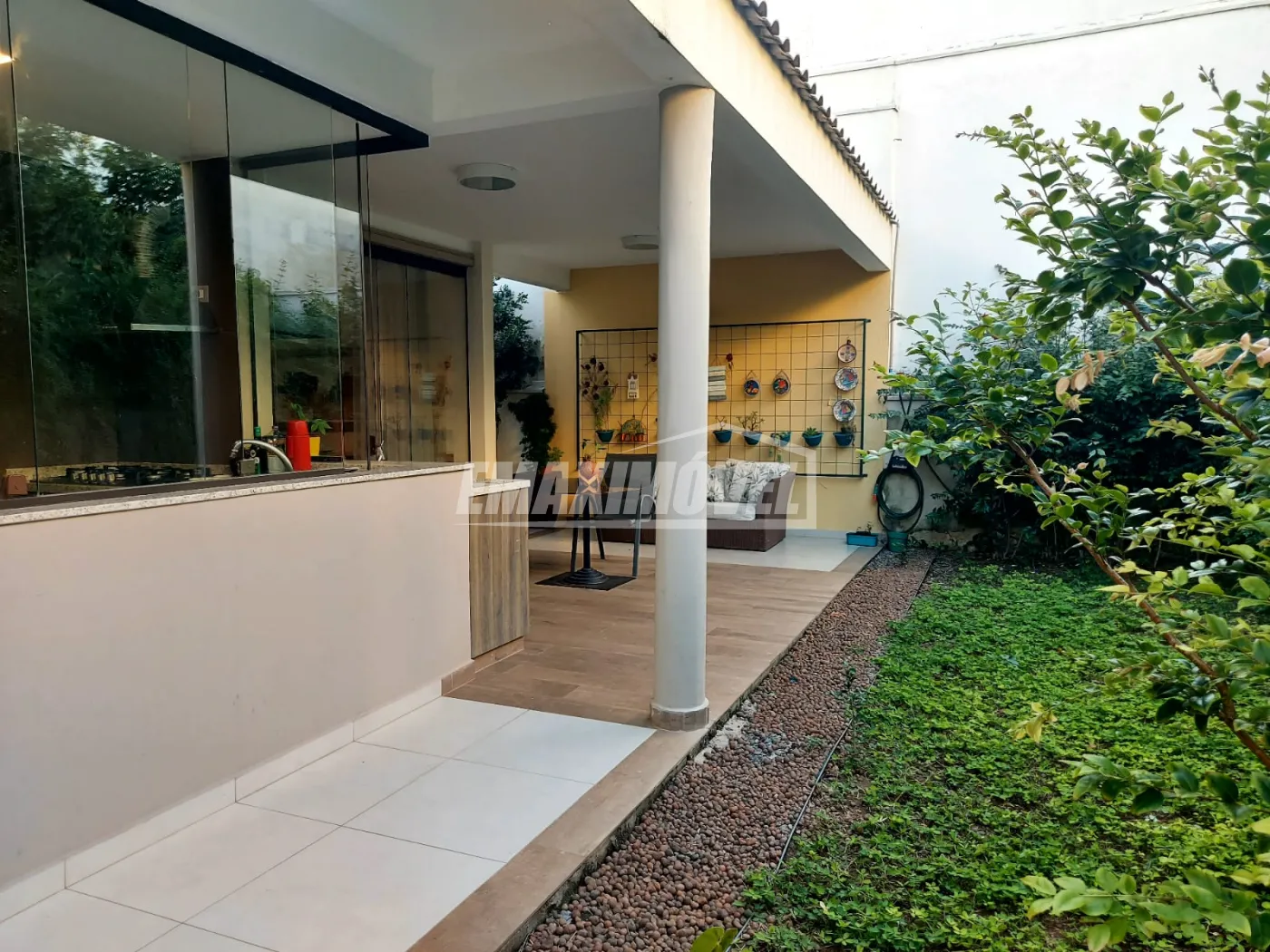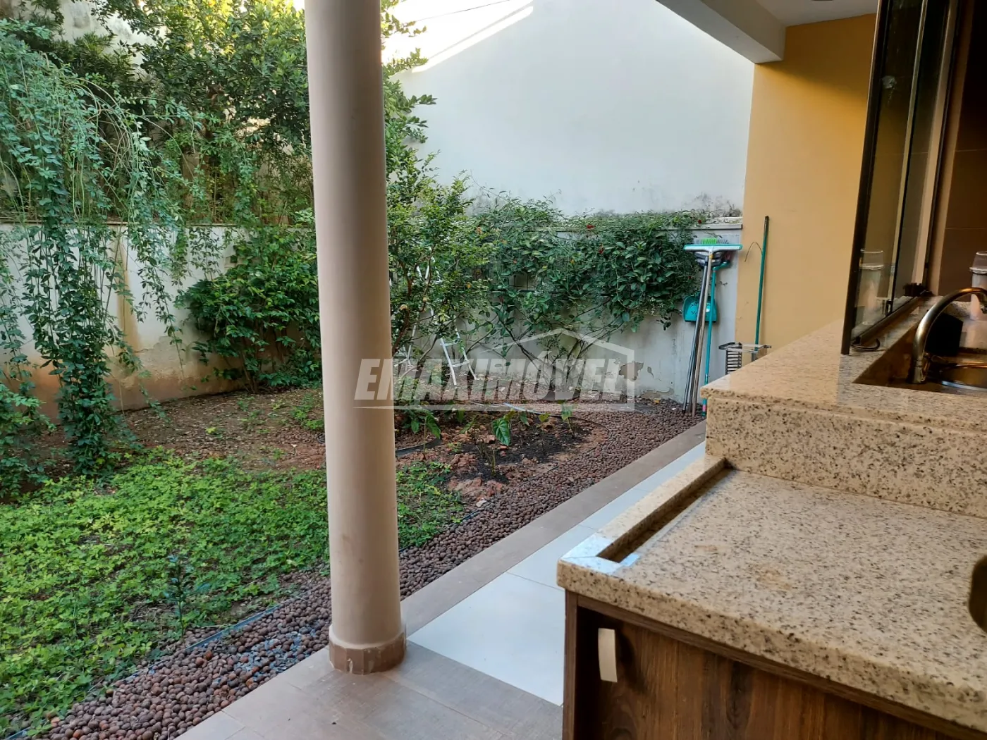 Primeiro piso - sala três ambiente- jantar estar e tv, lavabo, 1 suíte com sacada, área de luz com pé direito duplo, cozinha. lavanderia e área de serviço coberta, belo espaço gourmet com churrasqueira, quintal com bastante verde.