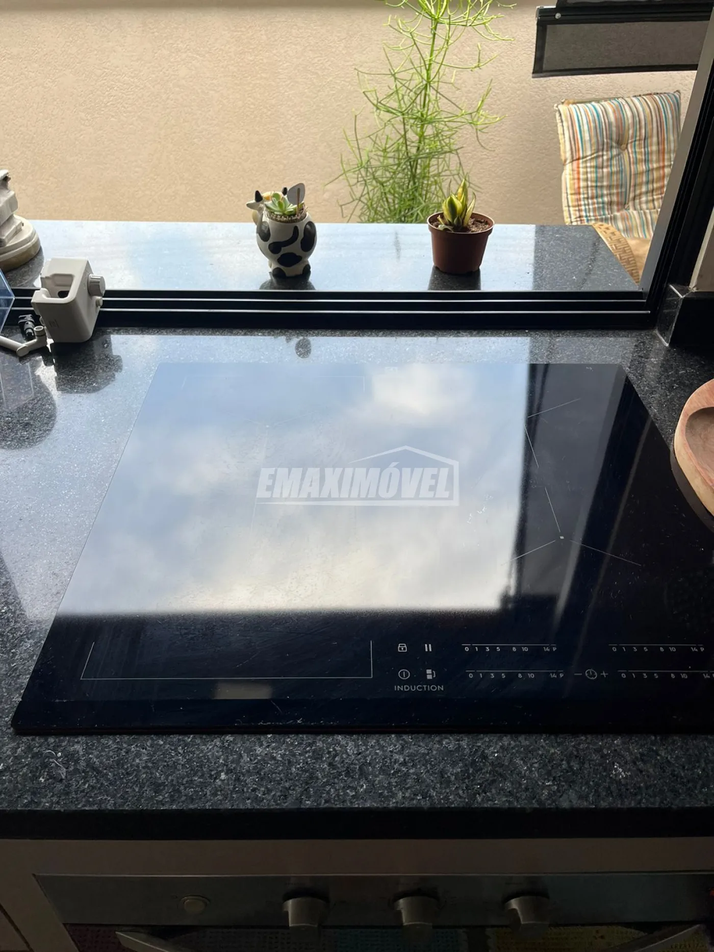 Fogão por indução, geladeira duas portas, maquina de lavar louca, forno e micro-ondas.