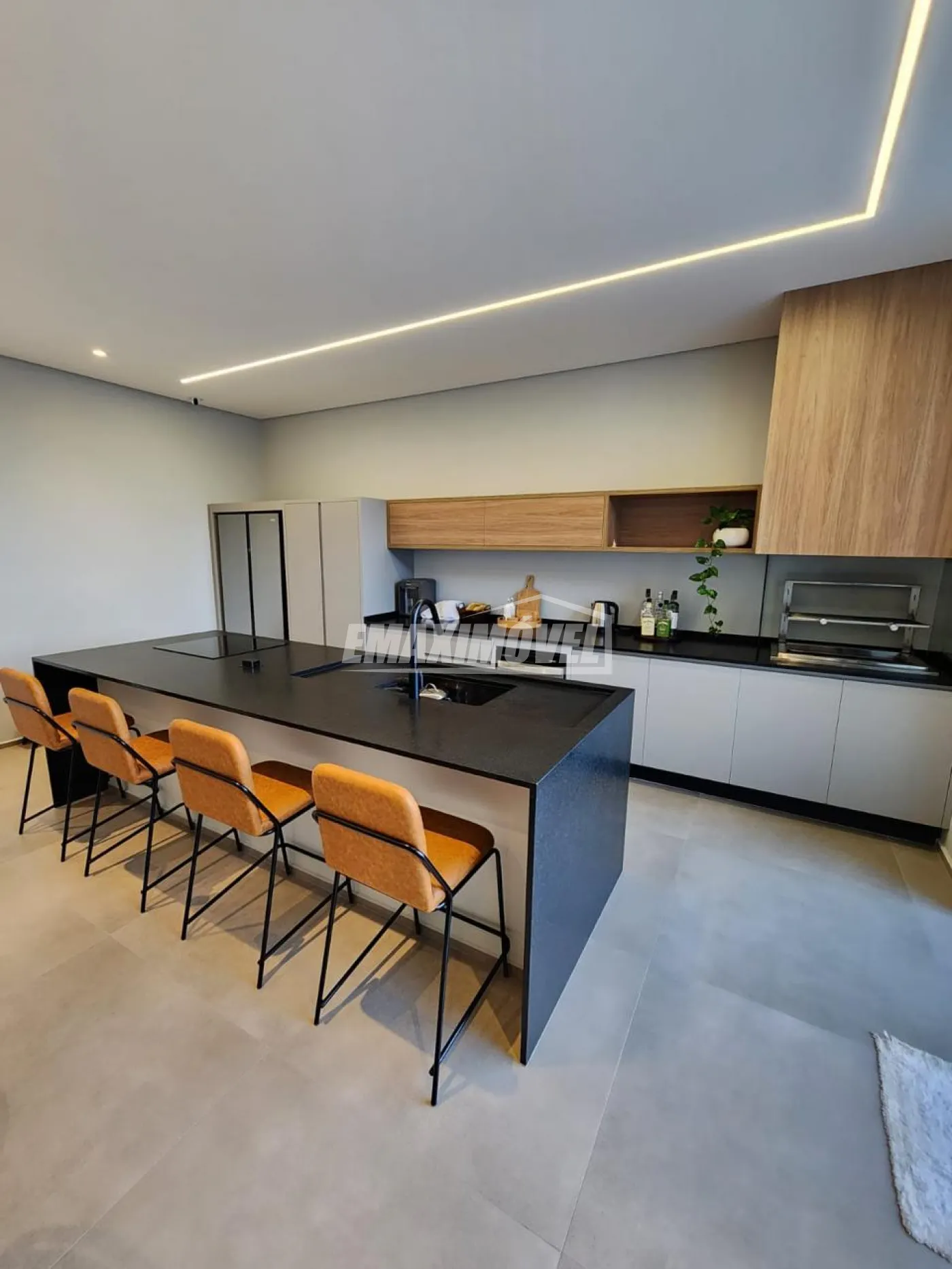 Cozinha gourmet com churrasqueira.