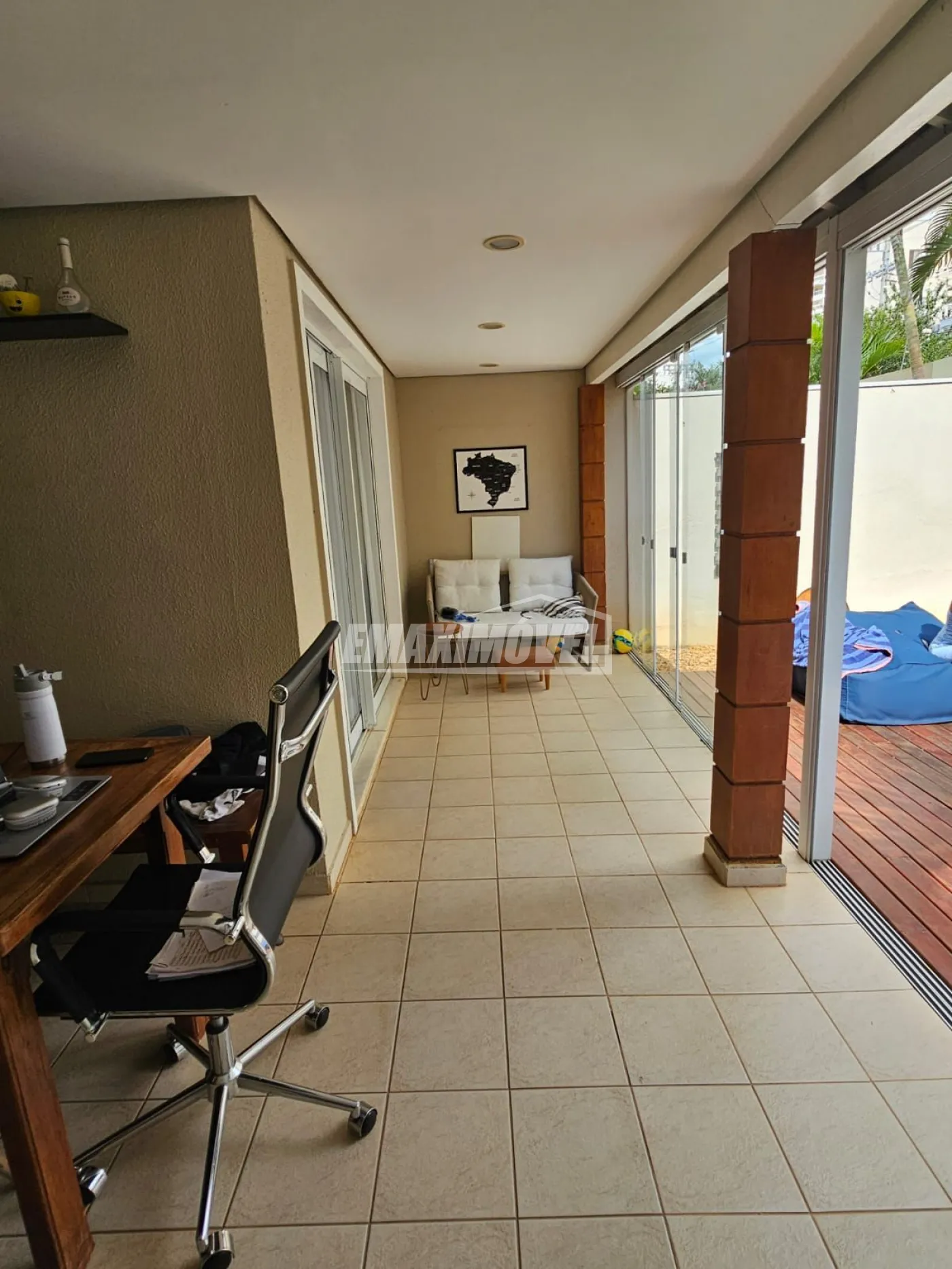 Varanda com fechamento em vidro e acesso ao quintal
