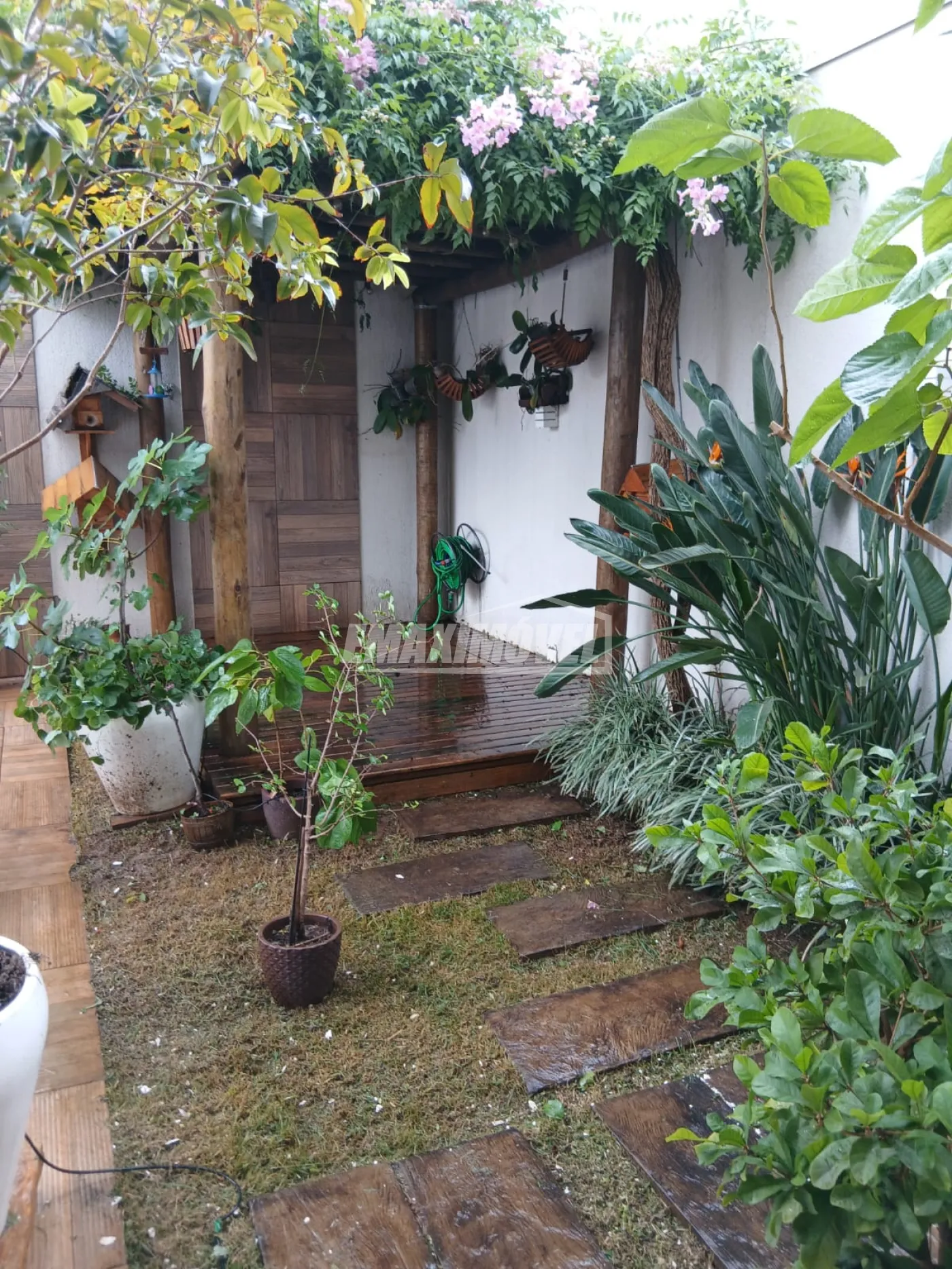Quintal amplo com jardim