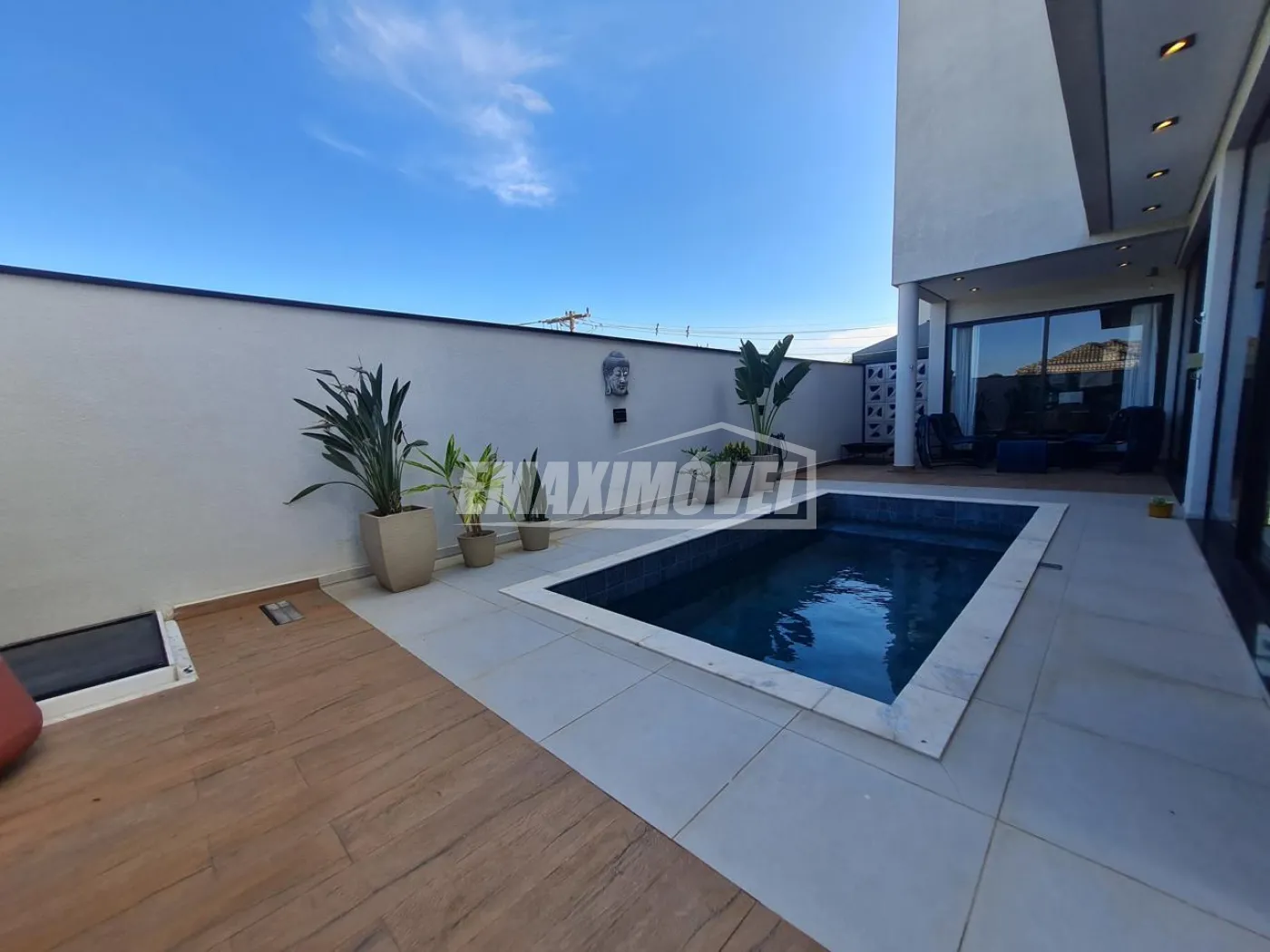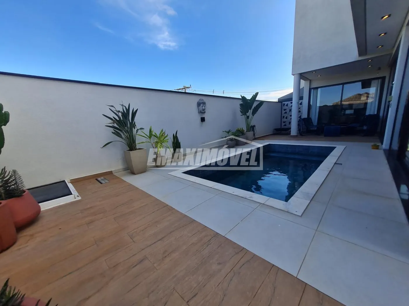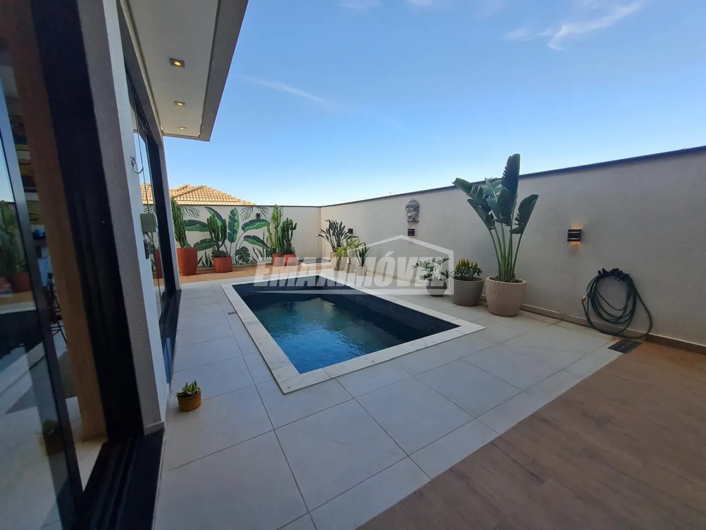 Piscina com revestimento Portinari, aquecimento solar e elétrico.