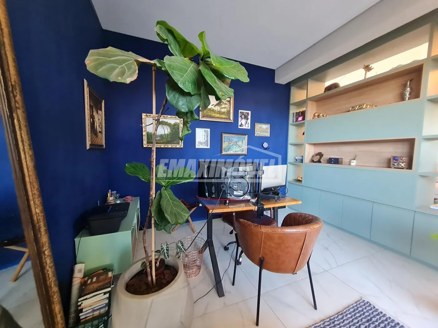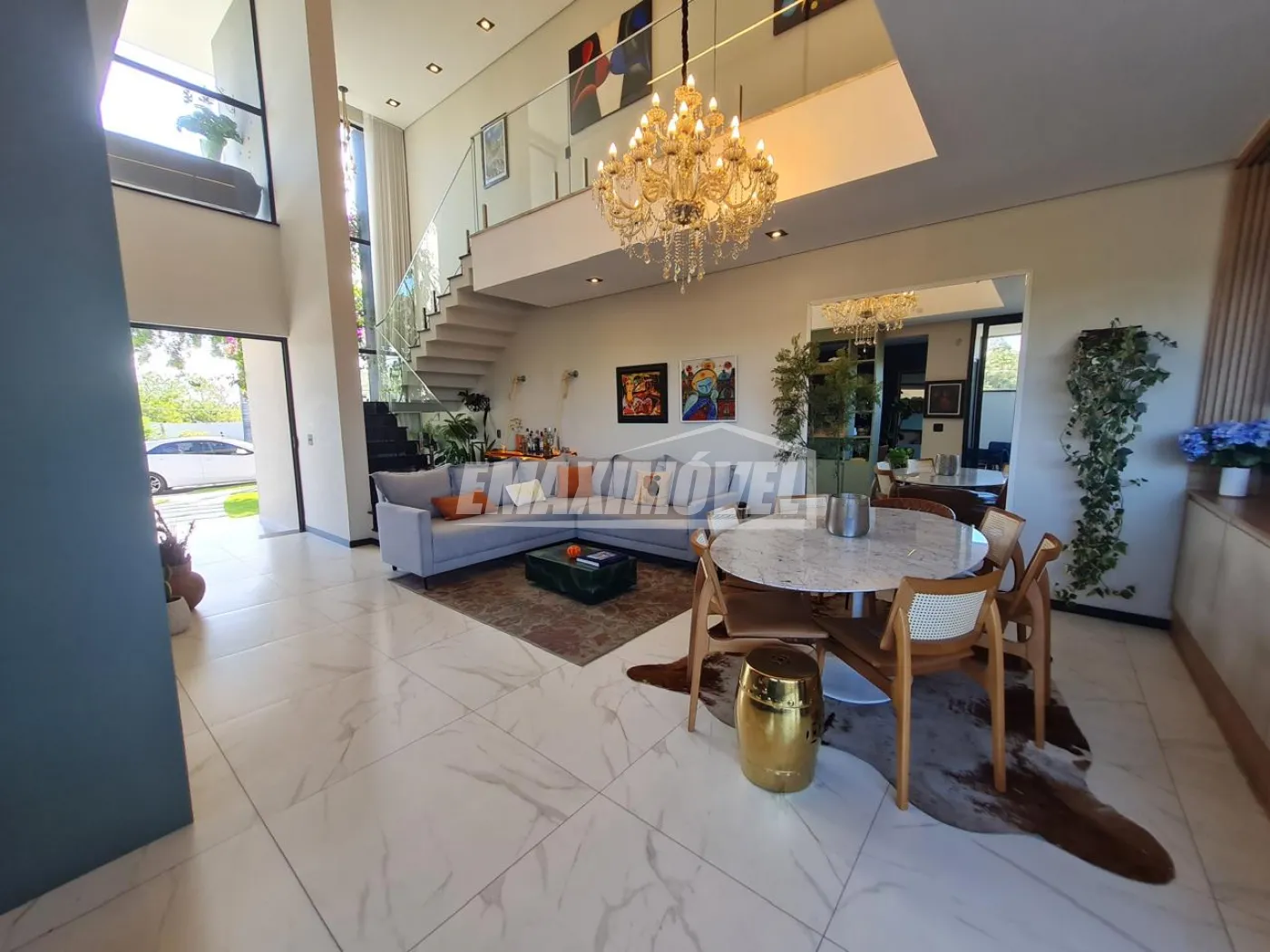 Sala com pé direito alto.