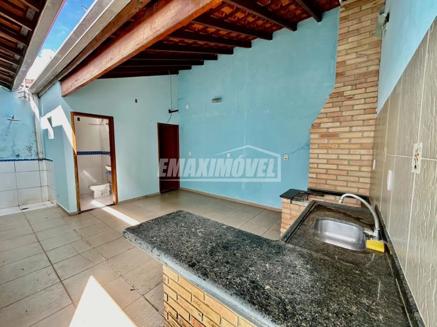 Área externa com espaço gourmet e quarto de despejo com banheiro
