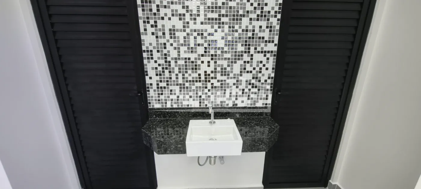 2 BANHEIROS C/CHUVEIROS + 2 WC + 1 WC PCD, COPA, RECEPÇÃO + 1 ÁREA