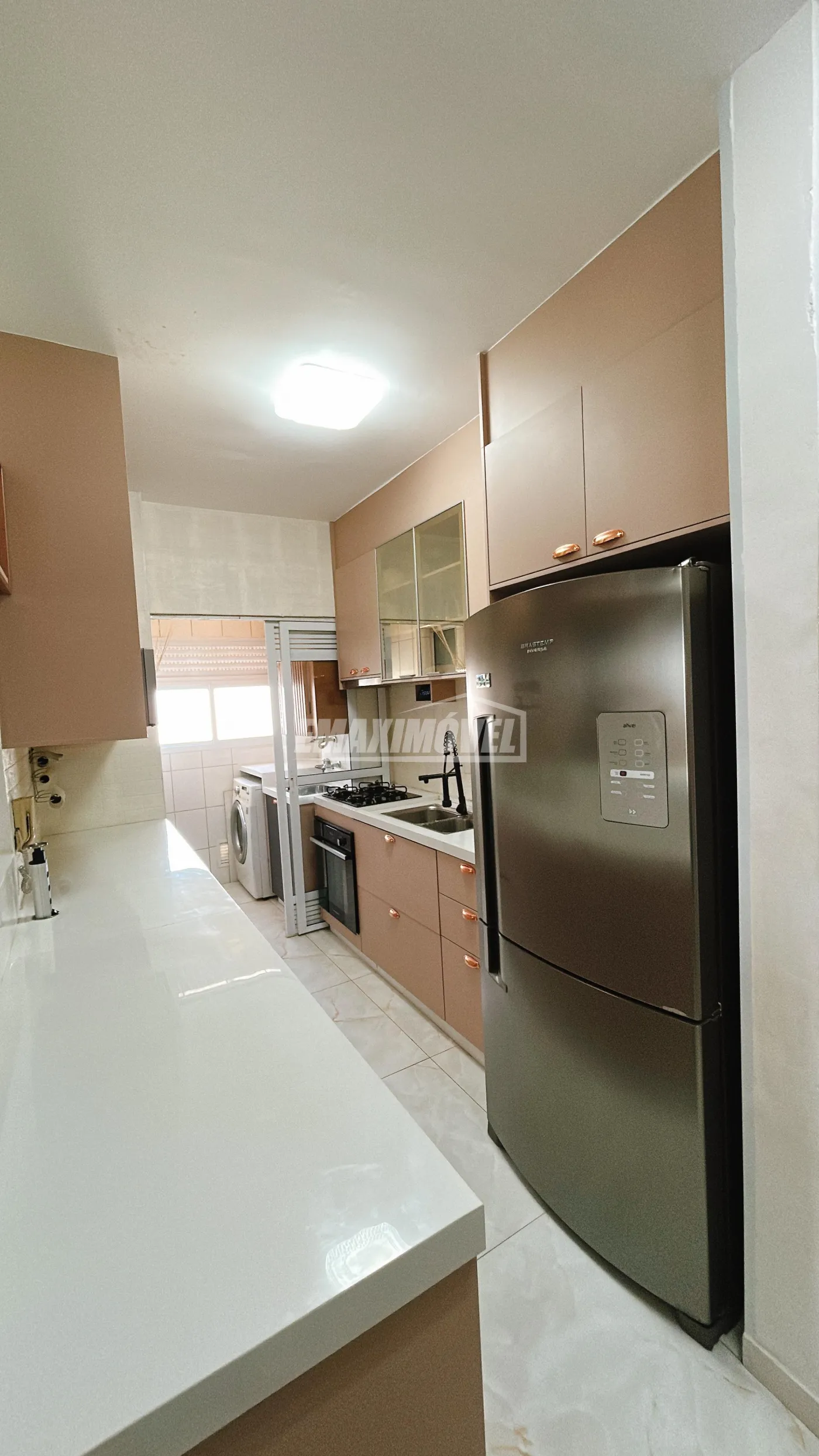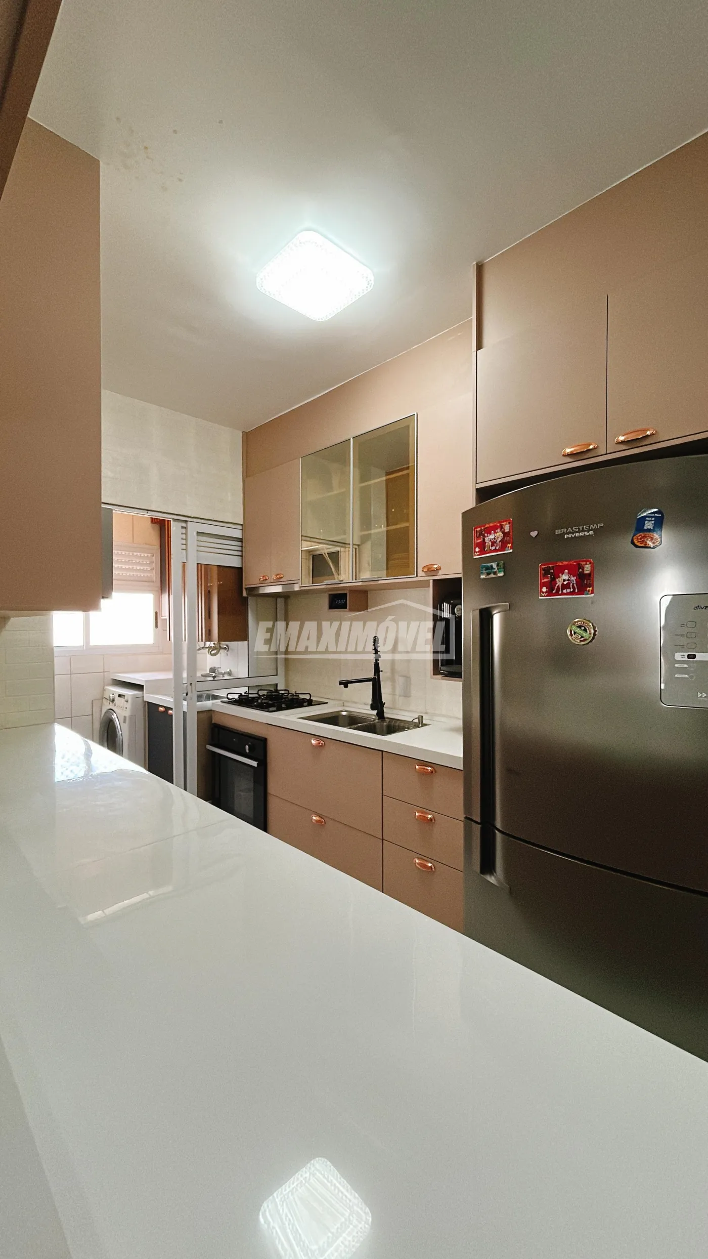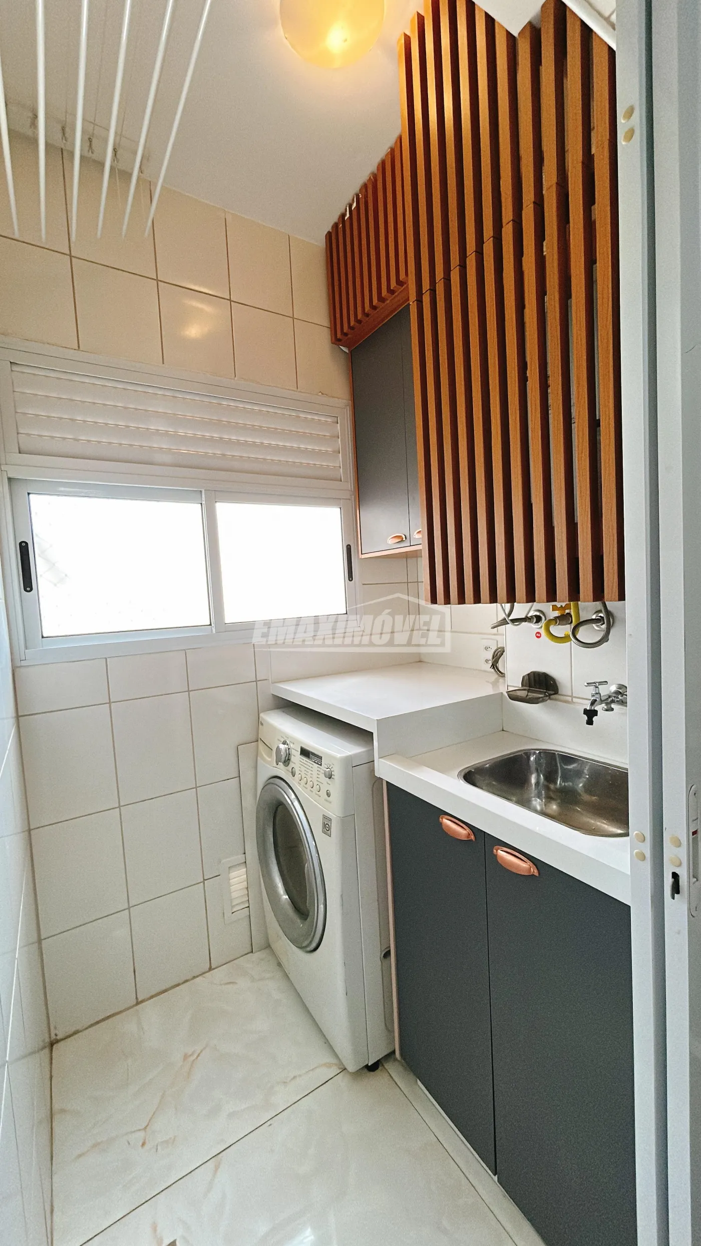 Área de serviço funcional, equipada com máquina lava e seca.