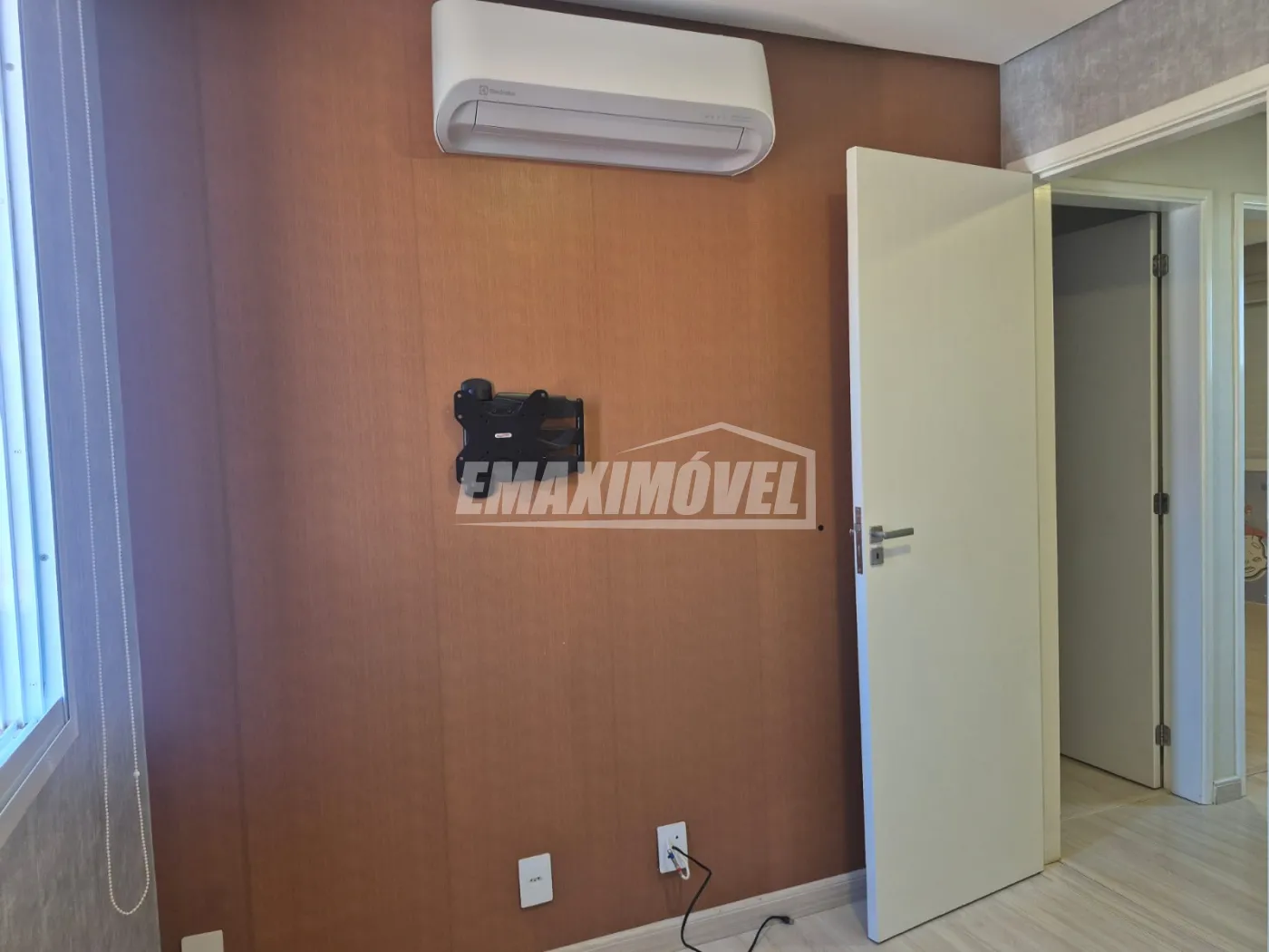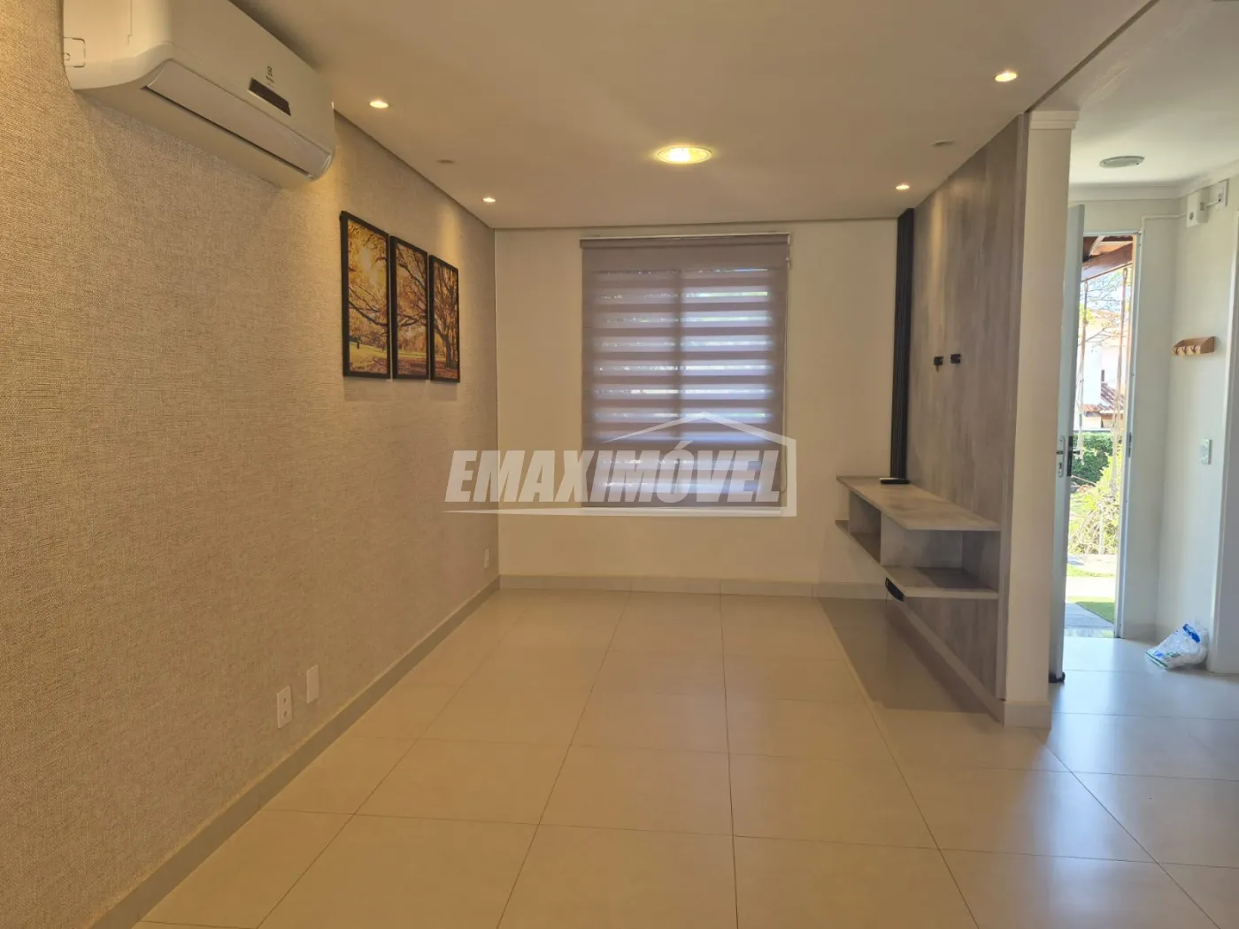 Sala 2 ambientes com painel de TV e ar condicionado