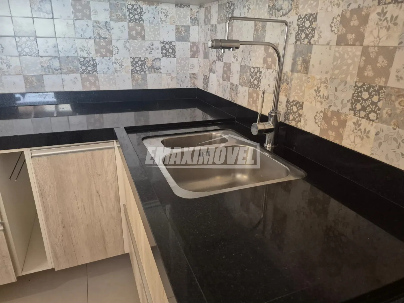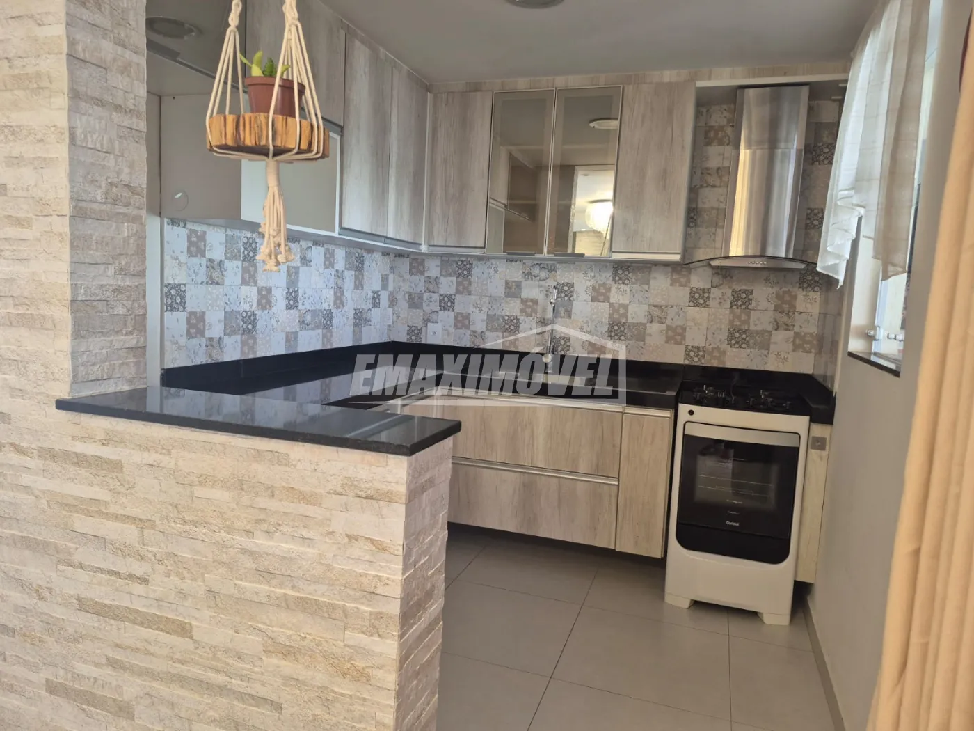 Cozinha com armários e exaustor