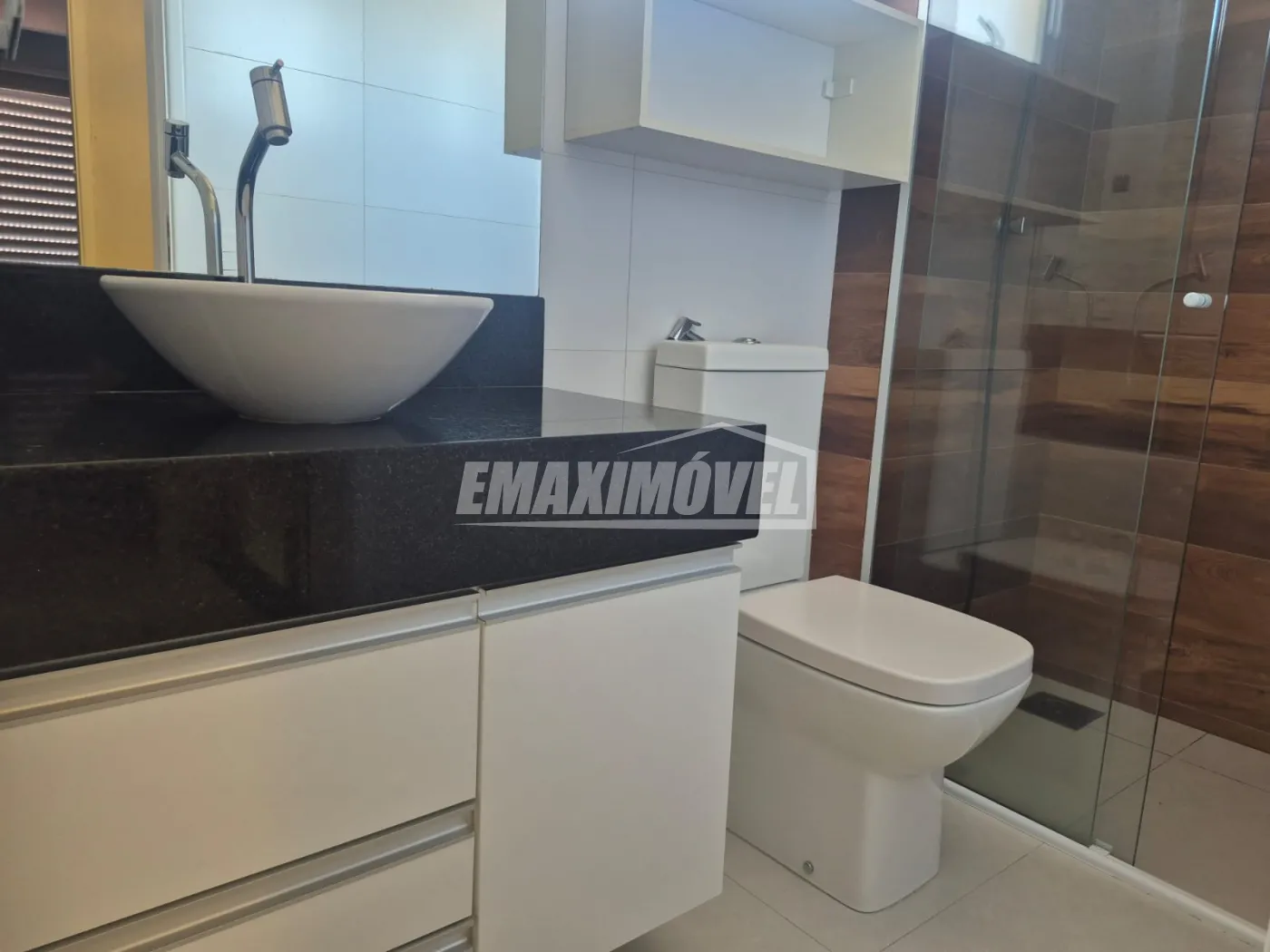 1 banheiro social com armários e gabinete